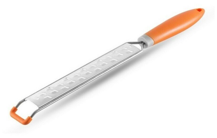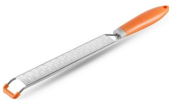 Терка узкая для крупной стружки WERNER STRETTO 50069, 34см. Толщина: 0,25мм. Терка небольшого размера зачастую требуется на кухне, чтобы натереть небольшое количество ингредиентов в блюдо. Теркой удобно измельчать продукты в тарелку или непосредственно над пищей перед подачей. Ею можно натереть такие продукты, как шоколад, цедра, ферментированные фрукты и овощи, сыры твёрдых и мягких сортов, гриб трюфель. Благодаря опоре на основании, можно не опасаться, что терка соскользнет во время работы.