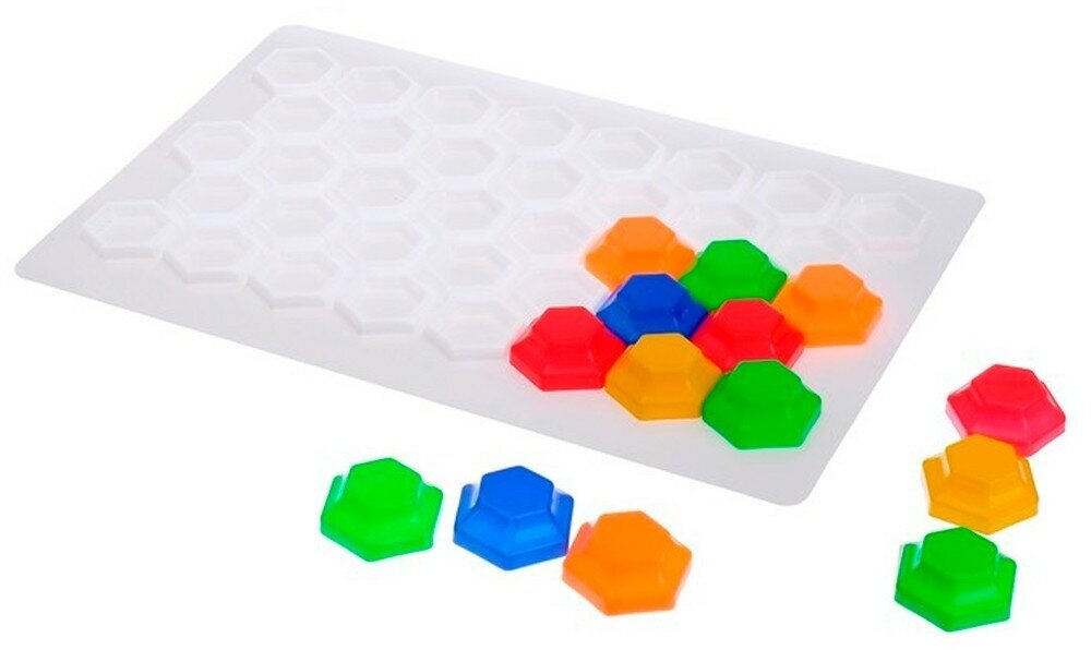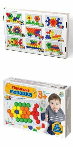«Пчелкина» мозаика пластмассовая для самых маленьких 60 элементов, 5 цветов - это увлекательная обучающая и развивающая игра для малышей. Она абсолютно безопасна для детей, крупные фишки размером 40 мм невозможно проглотить. В процессе игры ребенок освоит цвета, разовьет координацию движений, мелкую моторику и воображение. Мозаика рассчитана на детей начиная с 3 летнего возраста.