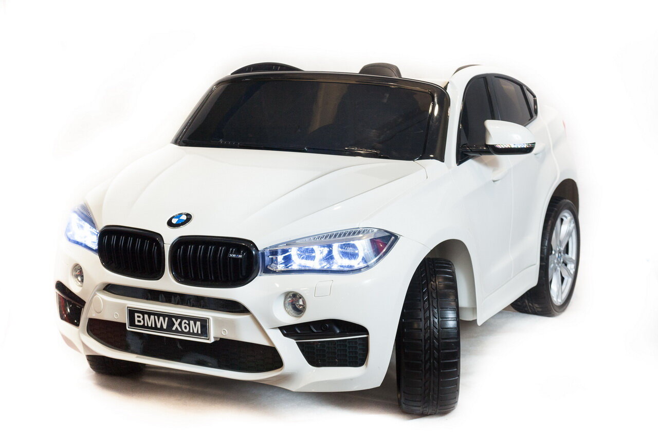 Электромобиль детский BMW X6 mini для детей от 3 до 8 лет. Большие полностью резиновые колеса EVA, максимальная нагрузка 30 кг. Аккумуляторы 2*6V/7Ah, два двигателя: 2x35W, привод на два задних колеса. Максимальная скорость 5 км/ч, 2 скорости вперед (переключение скоростей - с пульта ДУ) или плавный набор скорости с -помощью педали, одна скорость движения назад -заводится с кнопки, открываютщиеся двери, кожаное сиденье с ремнем безопасности. Удобный руль с музыкальными эффектами (кнопка клаксона и проигрывания мелодий). Разъем для подключения MP3, вход для карты SD, вход для USB.