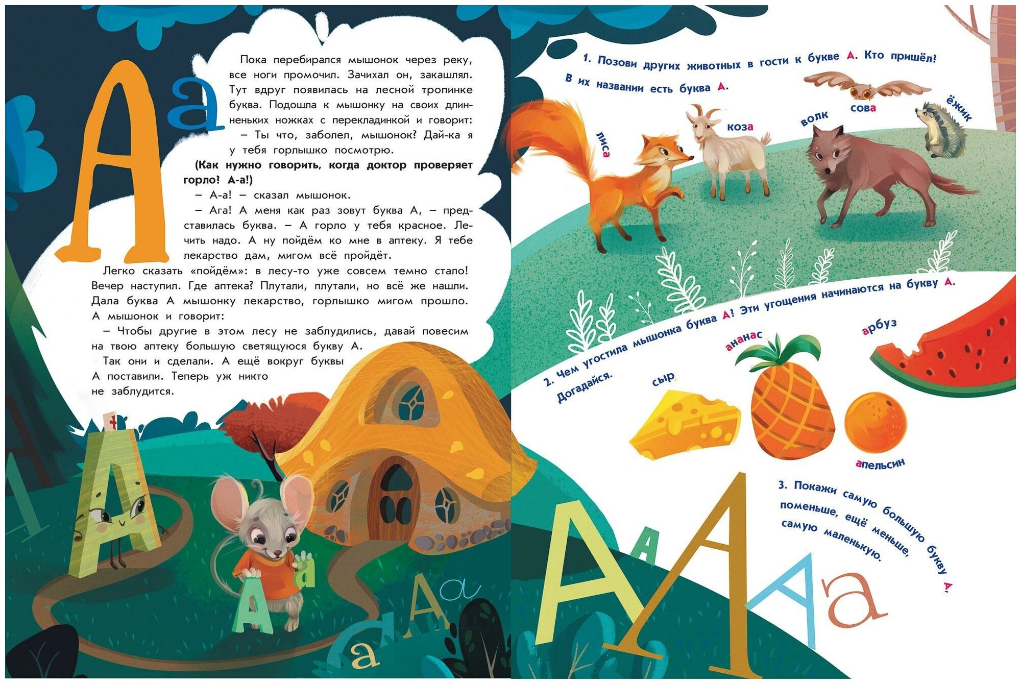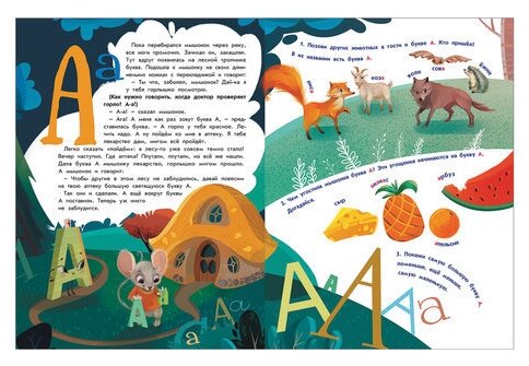 Дочь (3 года) стала интересоваться буквами, но цели изучения их в столь раннем возрасте я не имею, поэтому увидев этот букварь решила купить (в нашем случае только для интереса). У нас есть 2 книги Ульевой "Сказки от слёз" и "Энциклопедия добрых дел. Сказки для малышей". Дочери нравятся эти книги, поэтому решила купить и букварь. Мне и дочке понравилась эта книга: хорошие сказки и картинки тоже приятные. Есть задания, но нам они пока не интересны. Букварь подойдёт для знакомства с буквами, но для обучения чтению вряд-ли (думаю лучше более классический вариант). Но в целом книга составлена действительно, как букварь (по последовательности изучения букв). Книгу можно читать, как только ребенок заинтересуется буквами. Добавлю пару разворота книги.