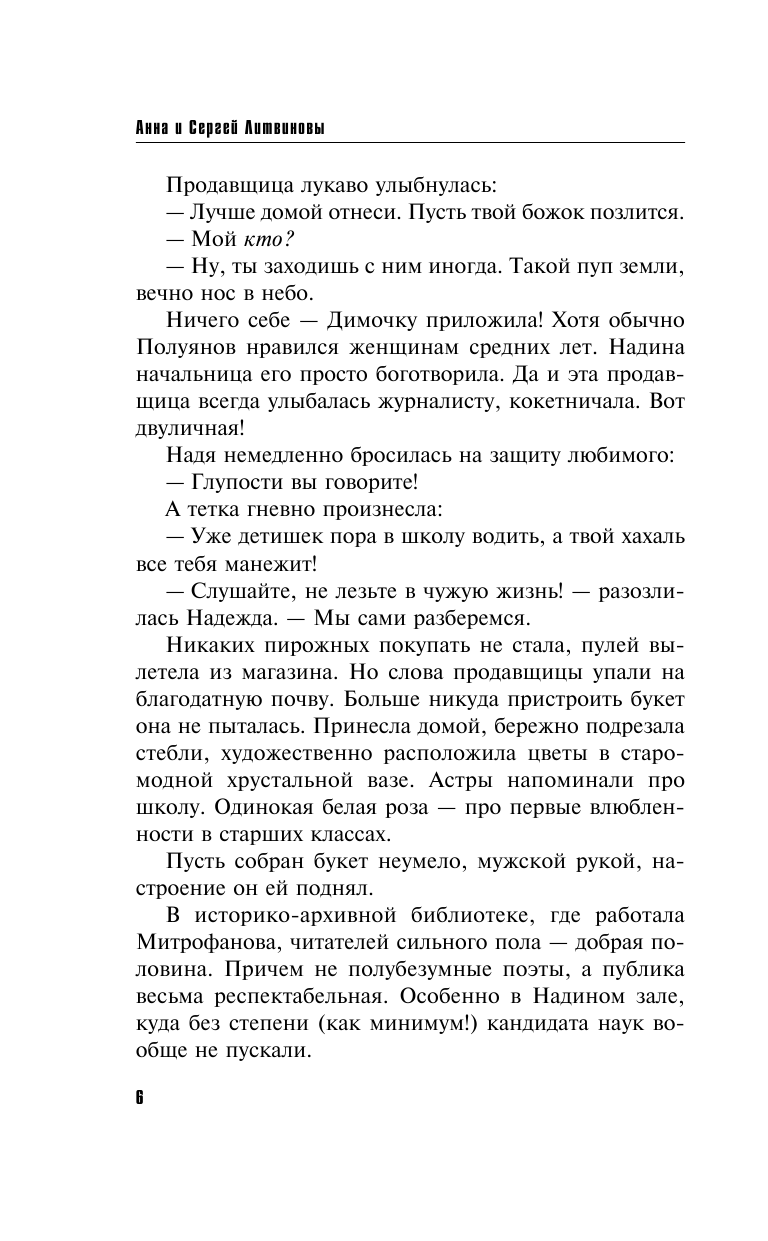 Романы Анны и Сергея Литвиновых шокируют и удивляют, заставляя переживать самые яркие чувства и сильные эмоции, которых порой так не хватает в жизни. Острые провокационные сюжеты и неповторимые образы - это фирменный стиль звездного тандема российского детектива!