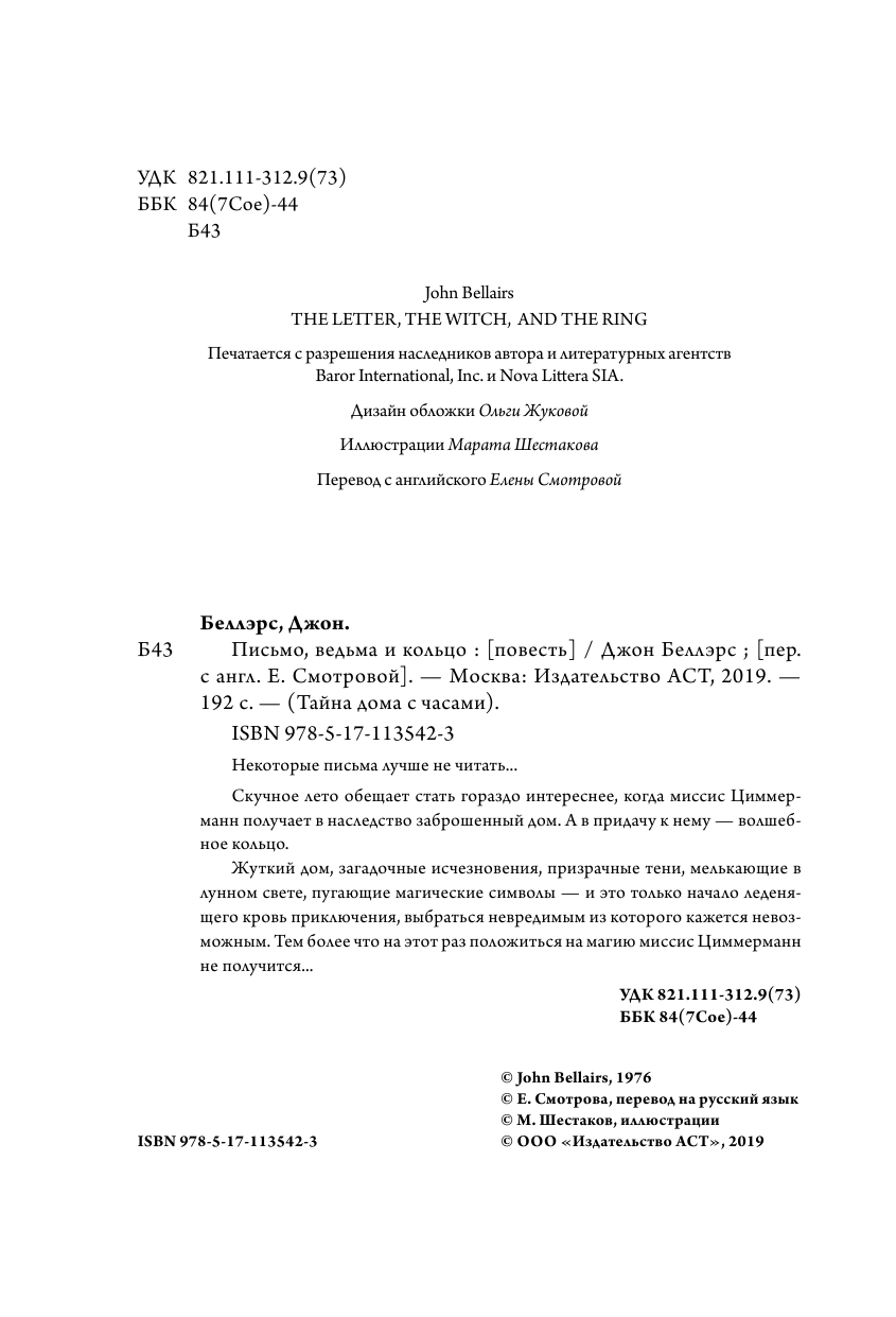 Книга: Письмо ведьма и кольцо (Джон Беллэрс); Издательство АСТ, 1976