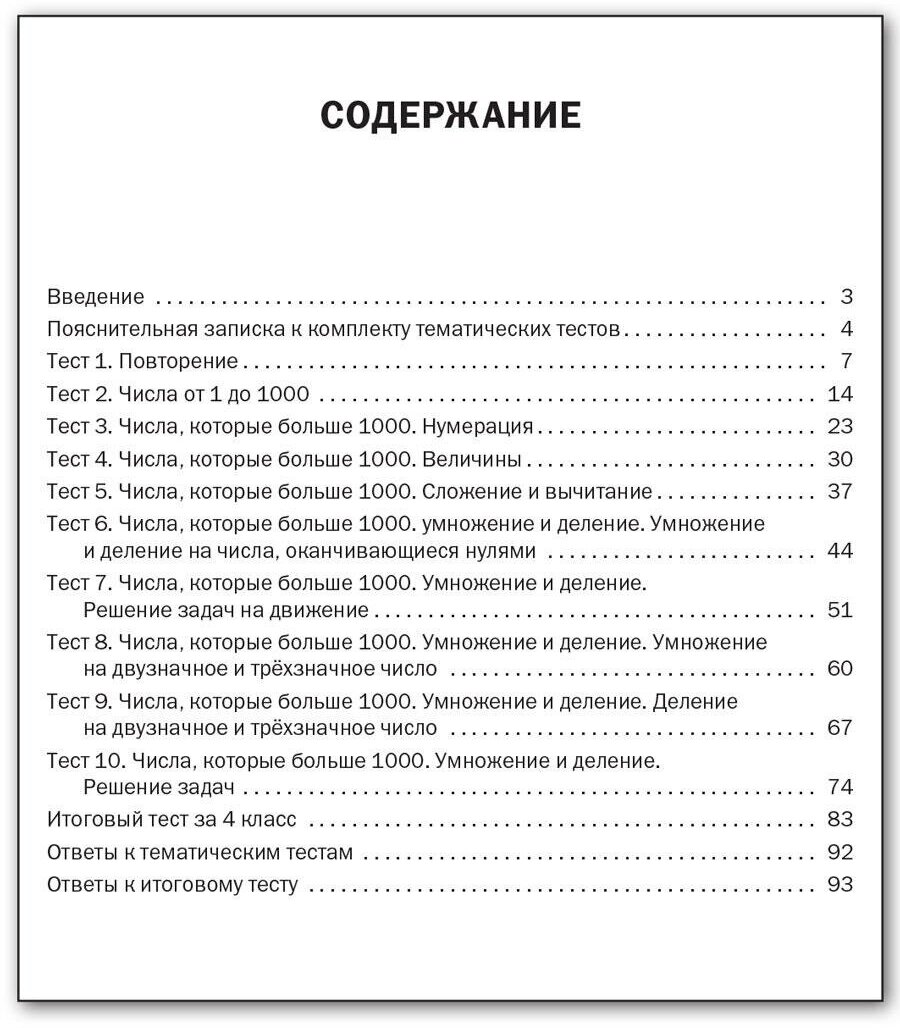 В пособии представлены 10 тематических тестов и один итоговый в двух равнозначных вариантах каждый. Все тесты снабжены спецификациями, где указаны: раздел содержания, проверяемые умения, тип задания, уровень сложности и максимальный балл за задание. Информация о том, как работать с тематическими тестами, изложена в пояснительной записке. В конце издания ко всем тестам даны ответы. Пособие составлено в соответствии с требованиями ФГОС НОО.