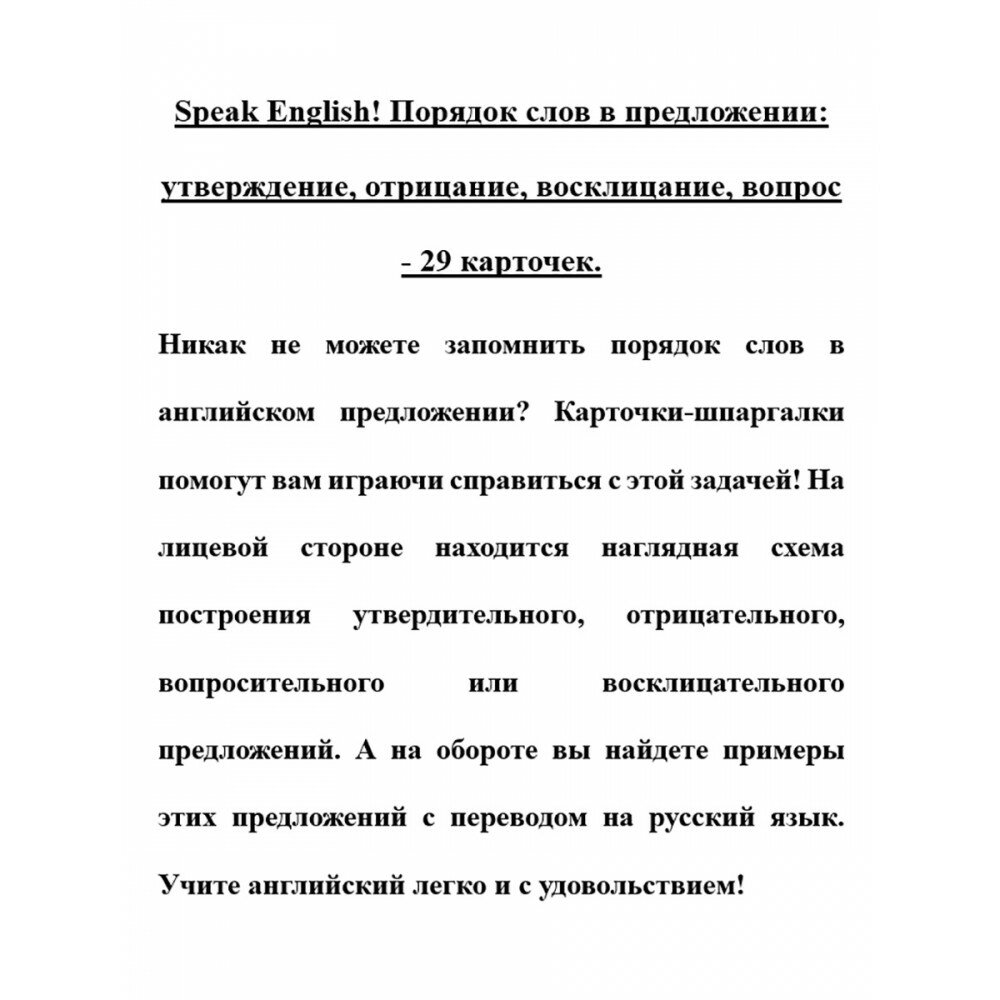 Speak English! Порядок слов в предложении: утверждение отрицание восклицание вопрос. 29 карточек (Без автора); Издательский дом "Питер", 2022