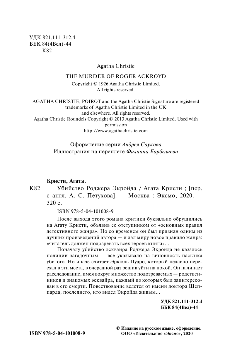 Книга: Убийство Роджера Экройда (Агата Кристи); Эксмо, Редакция 1, 2020