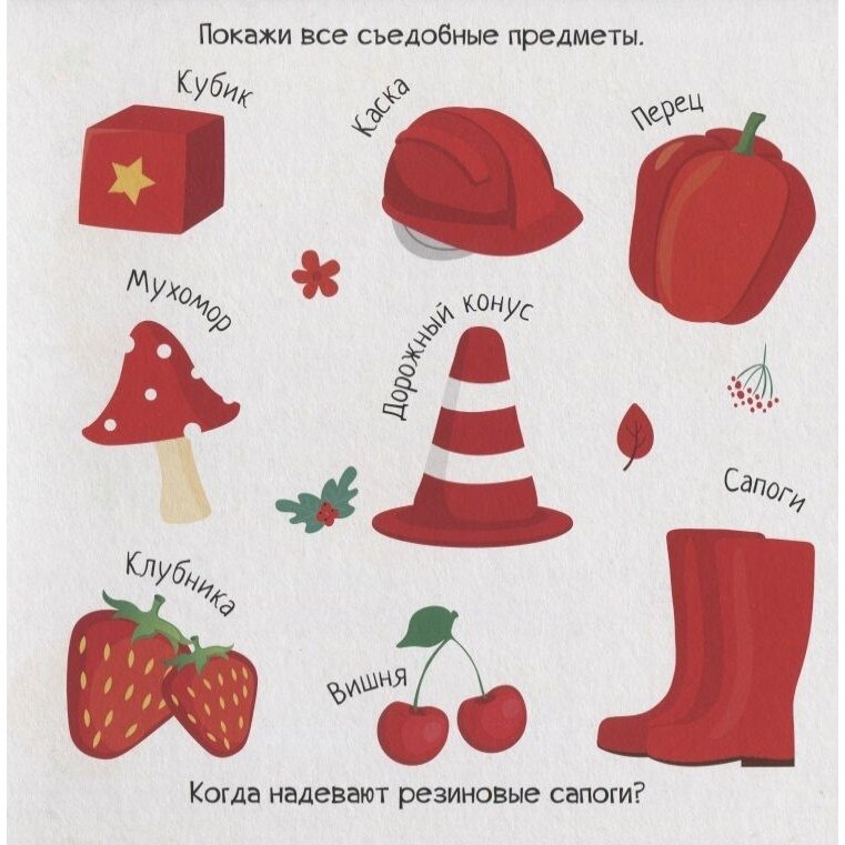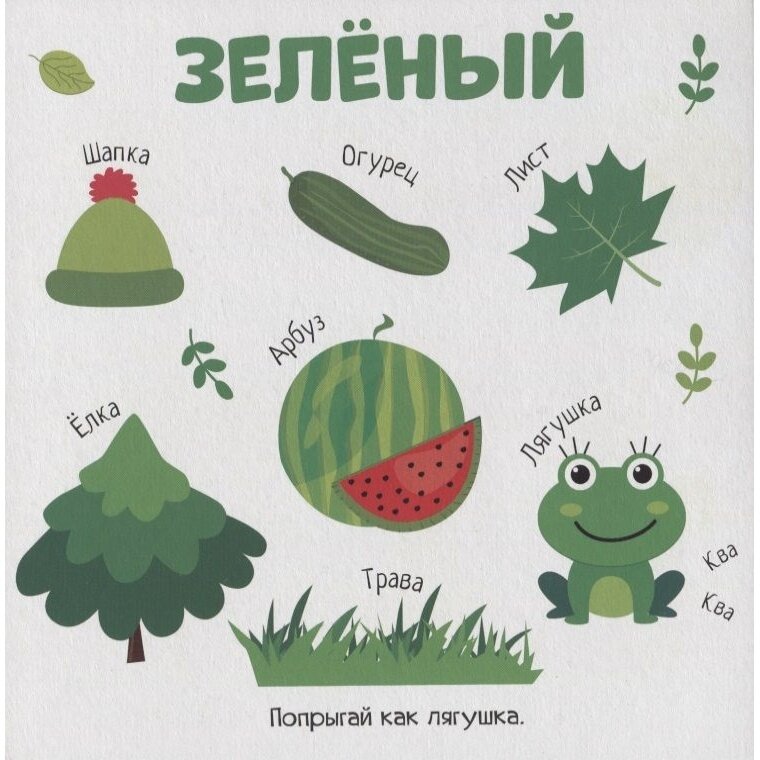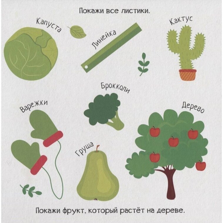 Квадратная картонная книга. На каждом развороте нарисованы картинки определённого Цвета. Все картинки подписаны. Качество книги отличное. Книга в активном пользовании уже несколько месяцев, углы целые, картон без замятий. Приятная на ощупь. Открываю определённый цвет и спрашиваю ребёнка Где зелёный огурец, где зелёная капуста и т. д. Ребёнок не умеет говорить, но показывает. Рекомендую к покупке также другие книги этой серии