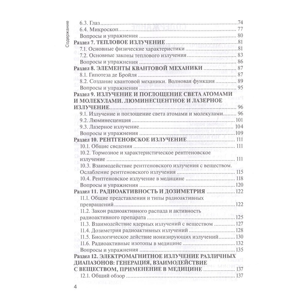 В учебник включен материал, иллюстрирующий общие физические закономерности, которые лежат в основе процессов, протекающих в организме человека, а также физическую основу ряда методов, используемых в диагностике и лечении заболеваний. С помощью вопросов и задач, представленных в конце каждого раздела, и тестов, помещенных в конце книги, студент сможет проверить свои знания, а преподаватель - проконтролировать усвоение материала учащимися.