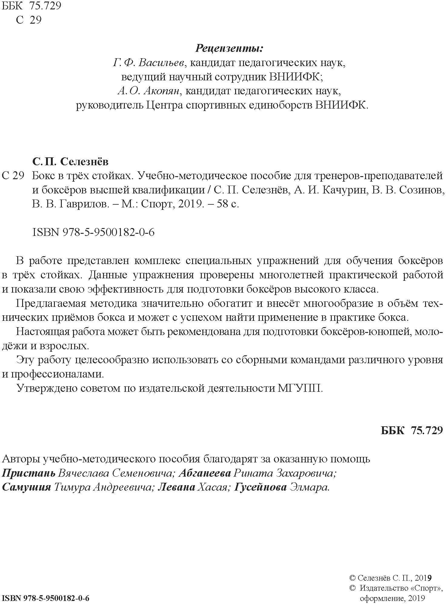 Бокс в трех стойках. Учебно-методическое пособие (Селезнев Сергей Павлович, Качурин Александр Иванович, Созинов Владимир Васильевич, Гаврилов Виктор Викторович); Спорт, 2019