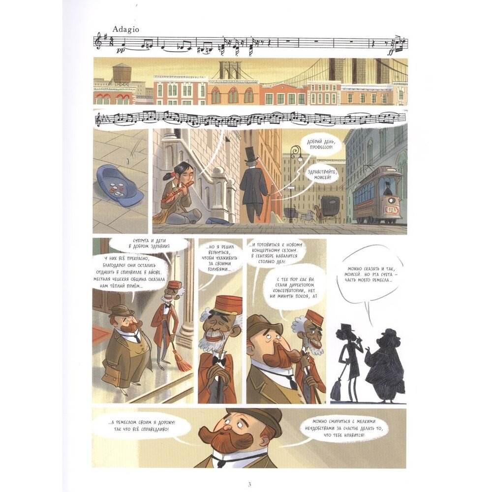 Первая книга комикса "Виолетта путешествует по свету" удивила меня тем, что рассказала детям младшего школьного возраста о жизни и творчестве французского художника Анри Тулуз-Лотрека. Второй том комикса называется "Виолетта путешествует по свету. Симфония Нового Света". Он познакомит детей с великим чешским композитором Антонином Дворжаком и его самым известным музыкальным произведением, написанным в США, "Симфонией Нового Света".