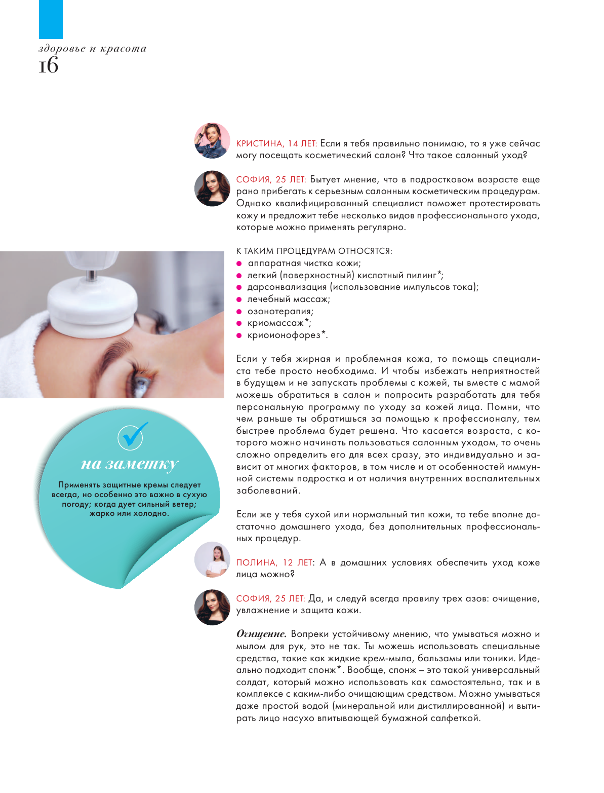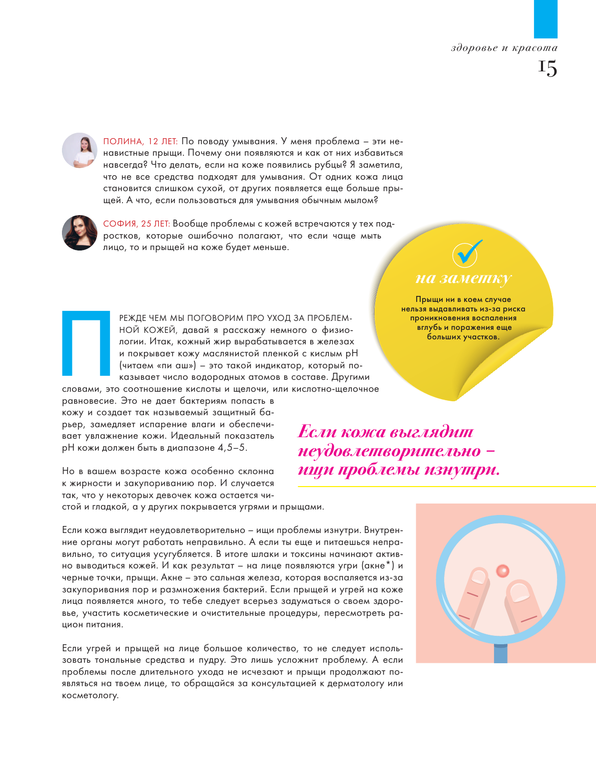 Эта книга ответит на самые важные вопросы, которые волнуют девочек: как вести себя с мальчиком, который нравится; какие кремы и мази быстро избавят от акне; как снять селфи, которое соберёт много лайков; как сделать так, чтобы тебя понимали родители и друзья. Юные читательницы познакомятся с тремя подружками, которые обсуждают самые разные темы: красоту и стиль, чувства и отношения, увлечения и социальные сети. Вместе они узнают много нового и полезного. А помогут им в этом эксперты и популярные блогеры: Лариса Суркова @larangsovet, психолог и автор 18 книг; Наталья Османн, основатель проекта # FollowMeTo; ELENA864, beauty-блогер; Инна Белова @ inna_pro_style, имидж-стилист, fashion-блогер; Дарья Докучаева, спортивный диетолог - тренер; Елена Кирщина, профессиональная спортсменка IFBB PRO; Юлия Бабенко, детский психолог, преподаватель, интернет-коуч.