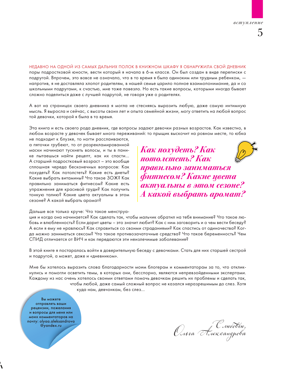 Книга интерактивна (в ней есть анкеты, тесты, места для записей), великолепно оформлена и будет прекрасным подарком для девочек-подростков.
