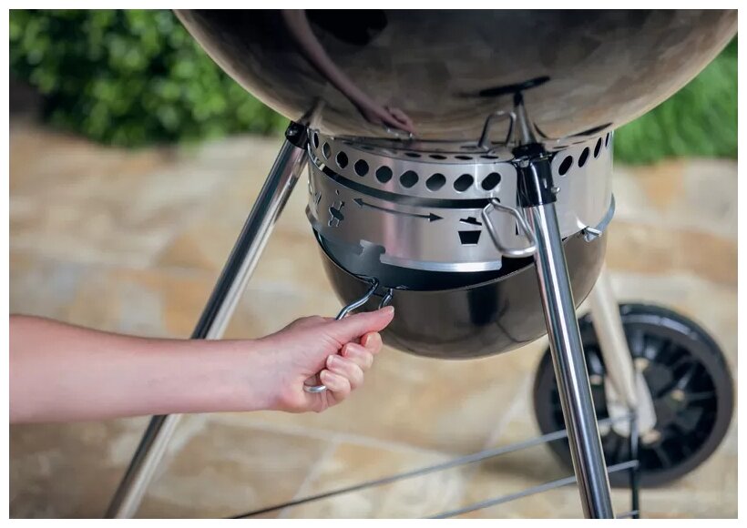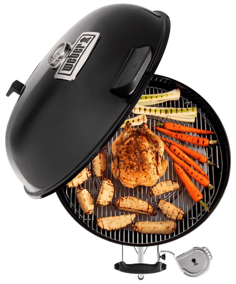 Угольный гриль Master-Touch GBS Premium — максимально оснащенная модель линейки угольных грилей. В стандартную комплектацию гриля Master-Touch GBS входит премиальная решетка для системы аксессуаров Gourmet BBQ System, которая значительно расширяет Ваши возможности приготовления на гриле самых различных и невероятных блюд! Решетка оснащена съемной центральной секцией круглой формы, вместо которой можно использовать целый ряд аксессуаров системы GBS: круглую чугунную решетку со специальным узором для стейков, вок для азиатской пищи, чугунную сковороду, ростер для курицы или индейки, и даже камень для пиццы! Новый гриль теперь дополнен новыми возможностями и функционалом помогающими использовать классический угольный гриль на полную мощность. Из важных изменений: гриль дополнен механизмом открывания крышки в комплекте идет специальный жароотсекатель и стальное кольцо, позволяющие превратить гриль в полноценную профессиональную коптильню гриль поставляется с крепежом под дистанционный термометр iGrill изменена форма решетки, прутья стали еще толще огромный хромированный логотип Weber украшает крышку гриля гриль имеет большие колеса в стиле Genesis II нижняя заслонка легко настраивается на рабочие режимы благодаря специальным пиктограммам