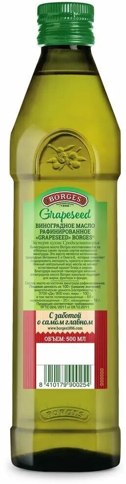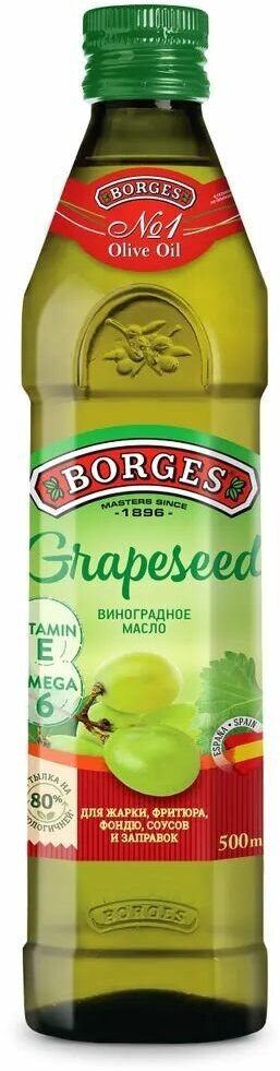 Виноградное масло Borges изготавливается из специально отобранных семян лучших сортов испанского винограда. Нежный нейтральный вкус масла не меняет естественный аромат ваших блюд и соусов. Виноградное масло Borges богато уникальными полиненасыщенными жирами, Омега-6 кислотами, витамином Е и природными антиоксидантами. Кроме того, оно очень термостойко и сохраняет свои свойства до температуры +240?C и поэтому очень хорошо подходит для жарки, тушения, фритюра и фондю.