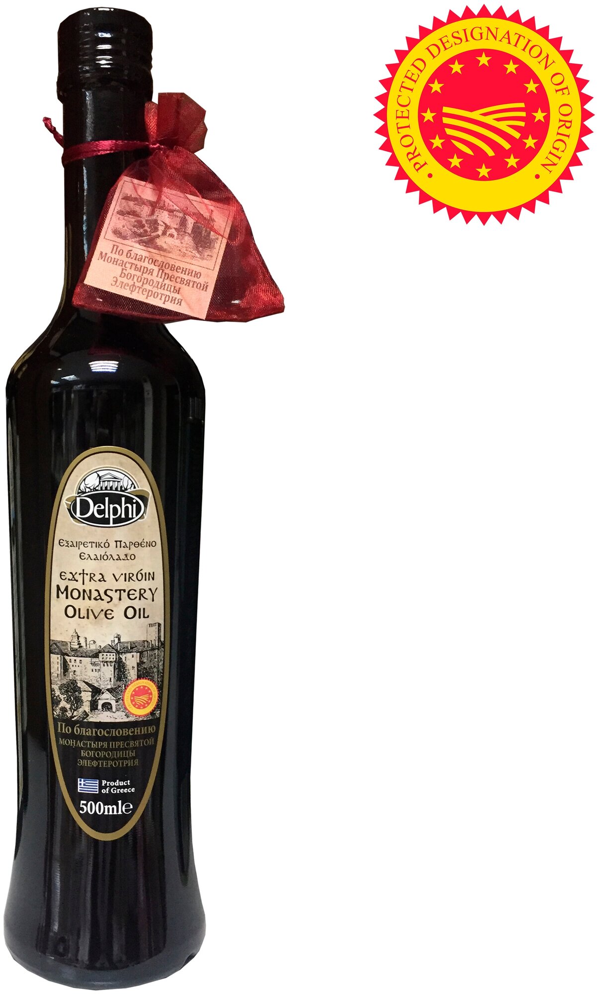 Масло оливковое DELPHI Extra Virgin Монастырское стеклянная бутылка 0.5 л