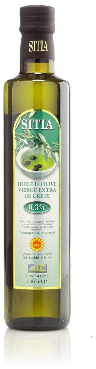 Это превосходное оливковое масло высшего качества с острова Крит, богатое витаминами и антиоксидантами, с крайне малым уровнем кислотности - 0,3% при допустимых 0,8%. Оно производится из маслин, выращенных в регионе Сития на востоке острова Крит - области, которая всемирно известна высококачественным оливковым маслом. Сдержанный аромат диких горных трав с нотками душистого перца, это высочайшего качества оливковое масло – правильное дополнение Вашим жареным и запеченным блюдам. Идеальная заправка для салатов.