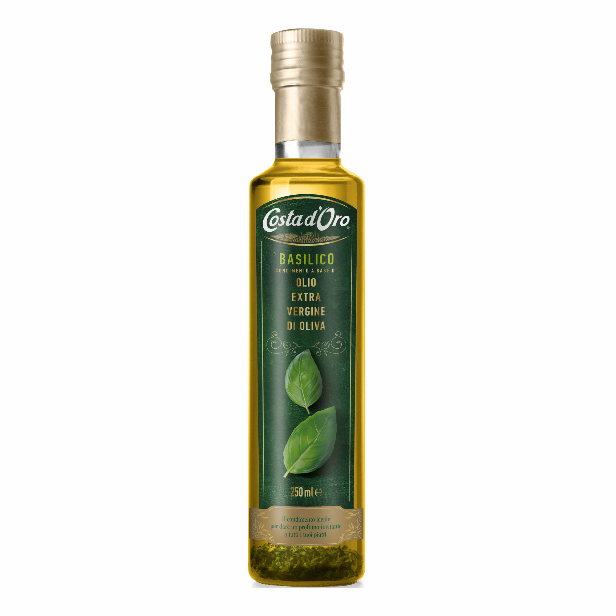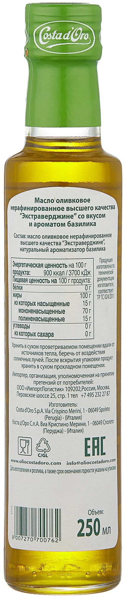 Масло оливковое Costa d'Oro нерафинированное высшего качества Экстраверджине со вкусом и ароматом базилика Состав: нерафинированное оливковое масло первого холодного отжима (Extra Virgin), натуральный ароматизатор базилика.