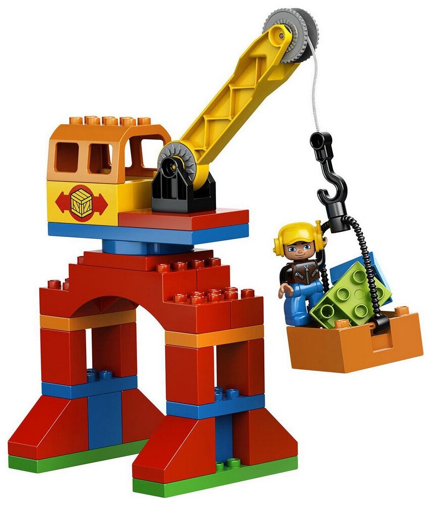 Перейдите на следующий уровень в строительстве поезда LEGO DUPLO с помощью набора «Большой поезд»! Садись в локомотив с настоящими звуковыми эффектами и загрузи вагоны камнями из карьера. Затем разгрузи их с помощью действующего подъёмного крана, прежде чем заправиться для следующей поездки! Комплект включает пути протяжённостью более 162 см, мост с туннелем, грузовик, каменный карьер из кубиков DUPLO, здание с рабочим подъёмным краном, а также множество ярких элементов DUPLO