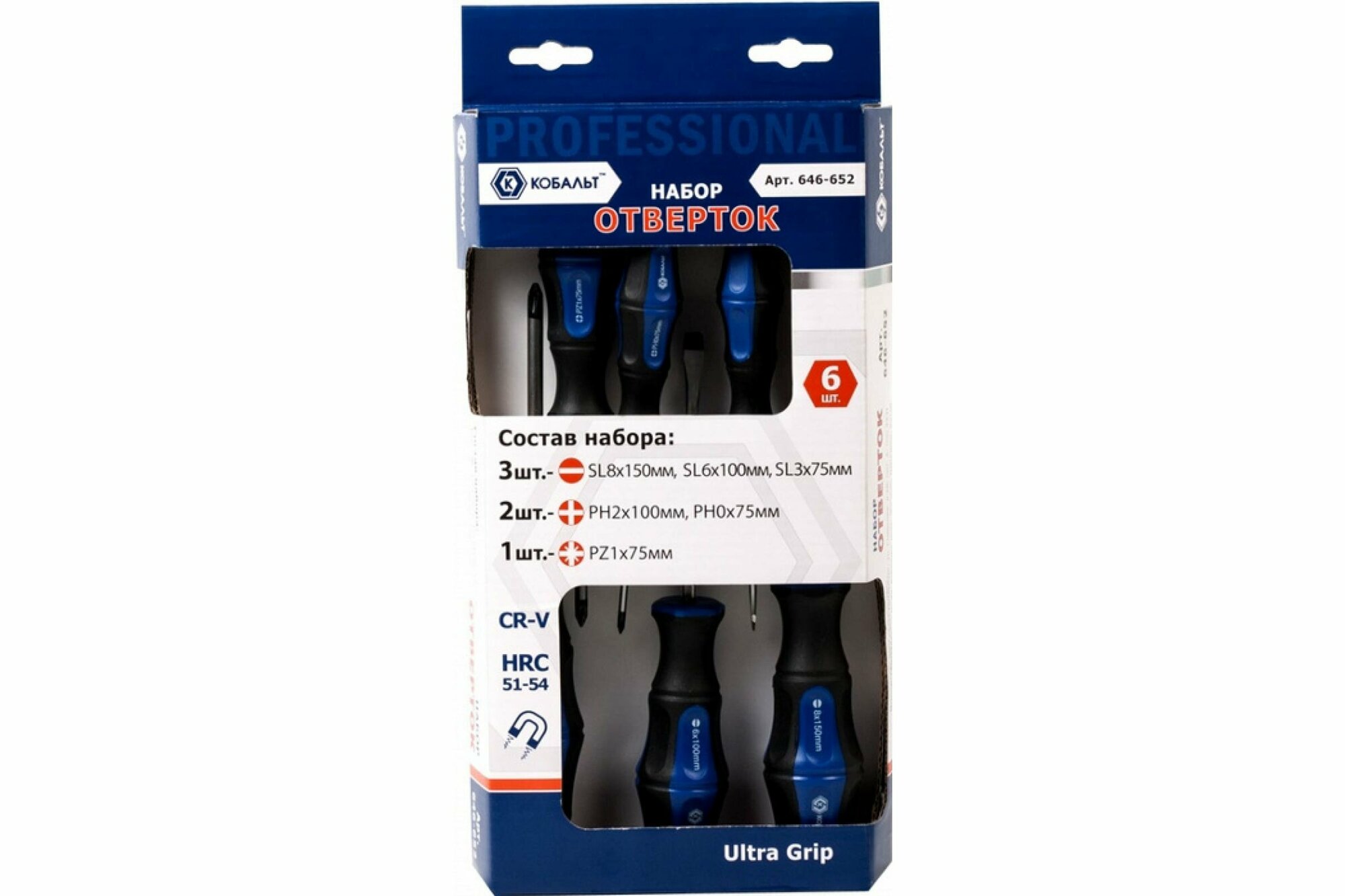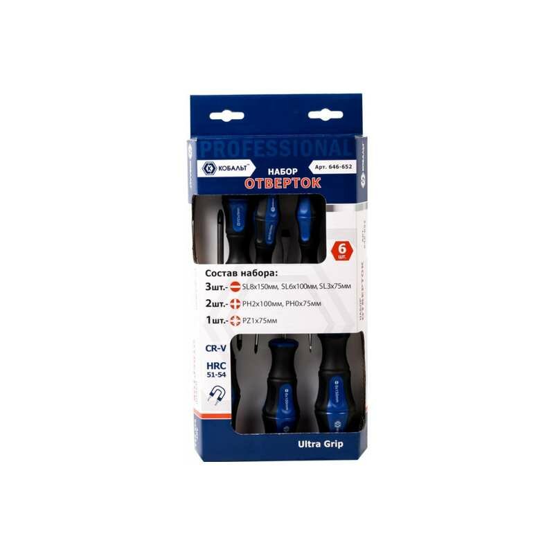 Набор отверток «Кобальт» Ultra Grip пригодятся любому мастеру в широком спектре различных ремонтных работ. Их рабочие части изготовлены из высококачественной хром-ванадиевой стали, обеспечивающей длительный срок эксплуатации. Кроме того, намагниченные наконечники инструментов предотвратят случайную потерю крепежа, а эргономичные рукоятки с противоскользящим покрытием придадут комфорт в использовании. Количество предметов 6 шт.