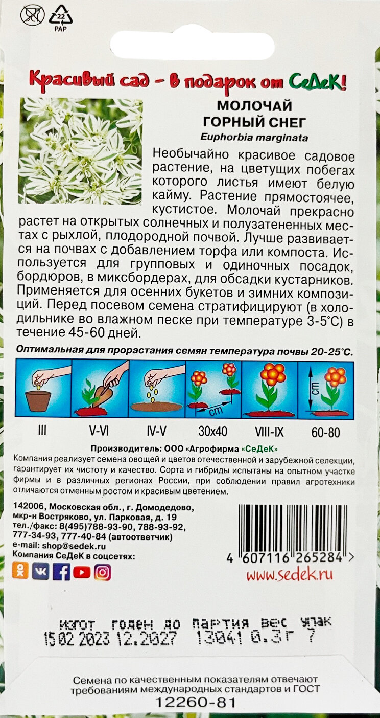 Семена цветов СеДеК Молочай СеДеК горный снег 0,5 г
