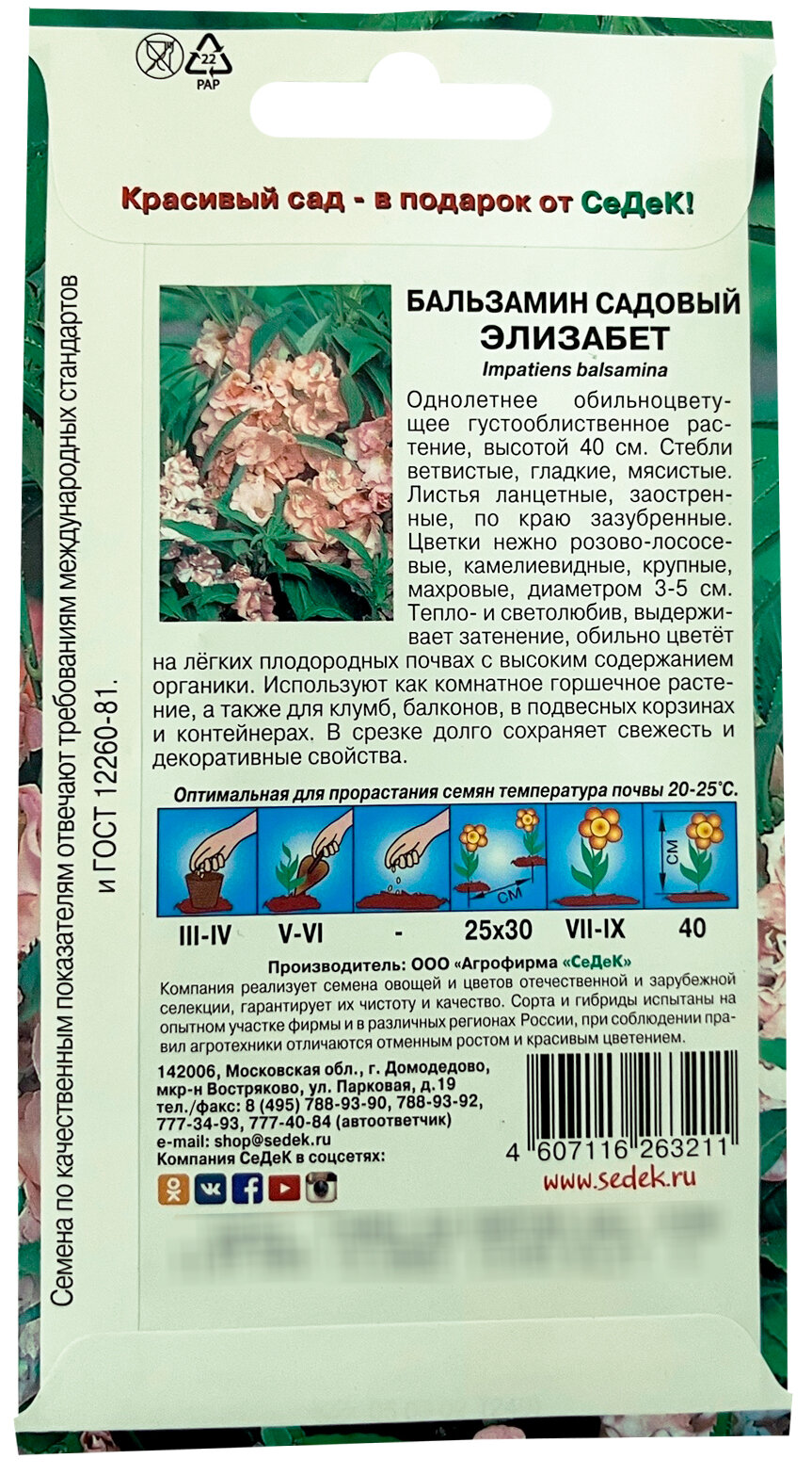 Сервис сравнения цен СкидкаГИД предлагает сравнить цены на товар «Семена цветов СеДеК Бальзамин СеДеК Элизабет лососево-розовый 0,2 г»