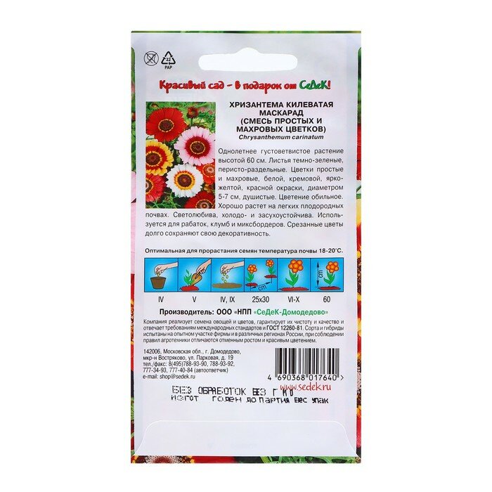 Сервис сравнения цен СкидкаГИД предлагает сравнить цены на товар «Семена цветов СеДеК Хризантема СеДеК Маскарад смесь цветов 0,5 г»