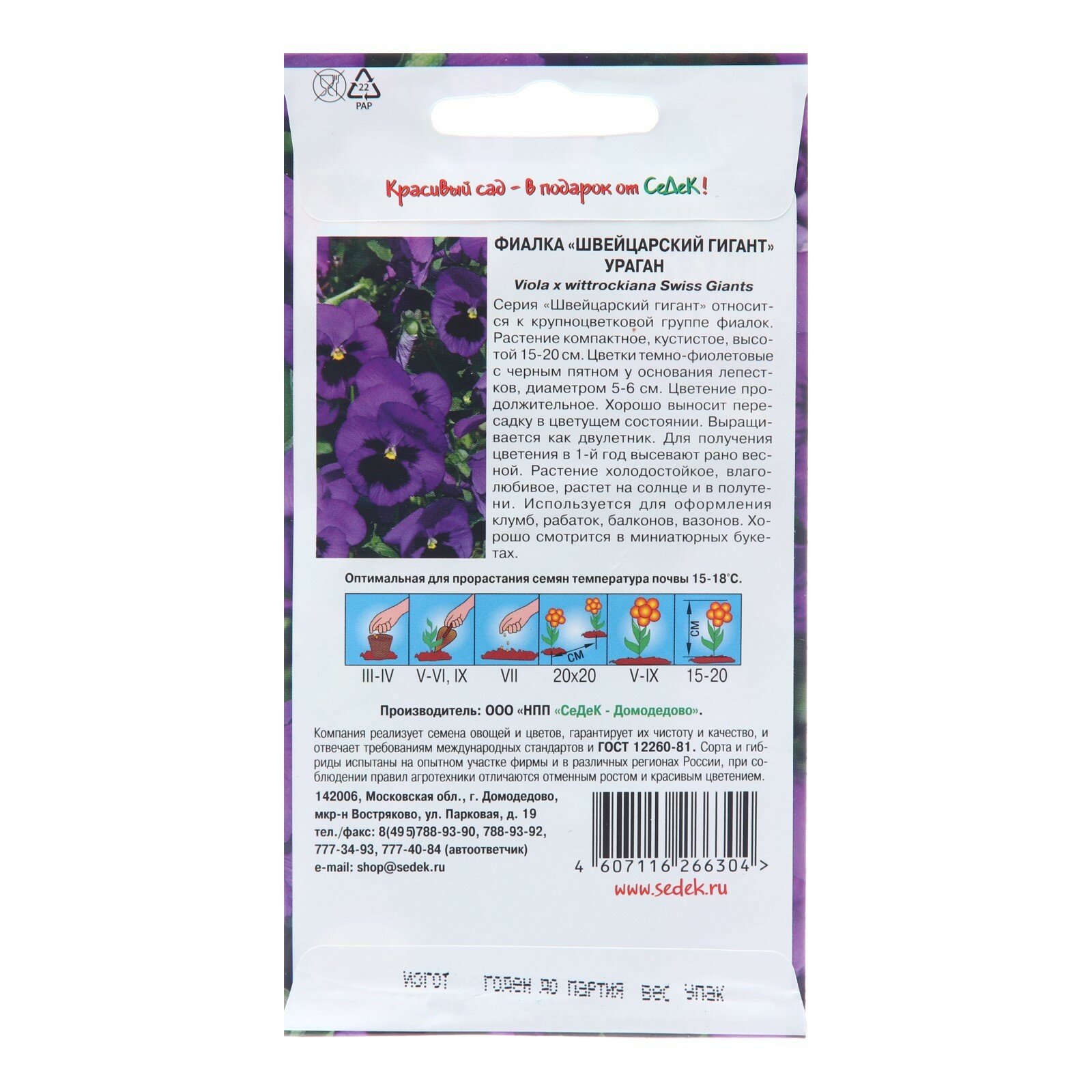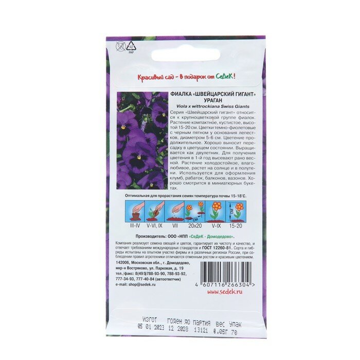 Сервис сравнения цен СкидкаГИД предлагает сравнить цены на товар «Семена цветов СеДеК Фиалка СеДеК Ураган темно-синяя 0,05 г»