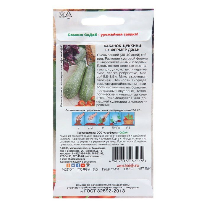 Сервис сравнения цен СкидкаГИД предлагает сравнить цены на товар «Семена овощей и ягод СеДеК Кабачок-цуккини СеДеК Фермер Джан F1 2 г»