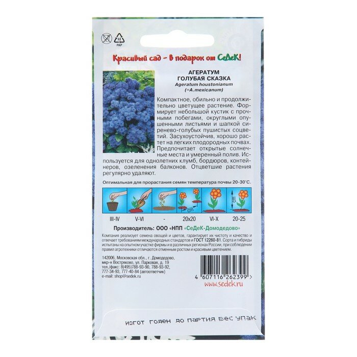 Сервис сравнения цен СкидкаГИД предлагает сравнить цены на товар «Семена цветов СеДеК Агератум СеДеК Голубая Сказка 0,1 г»