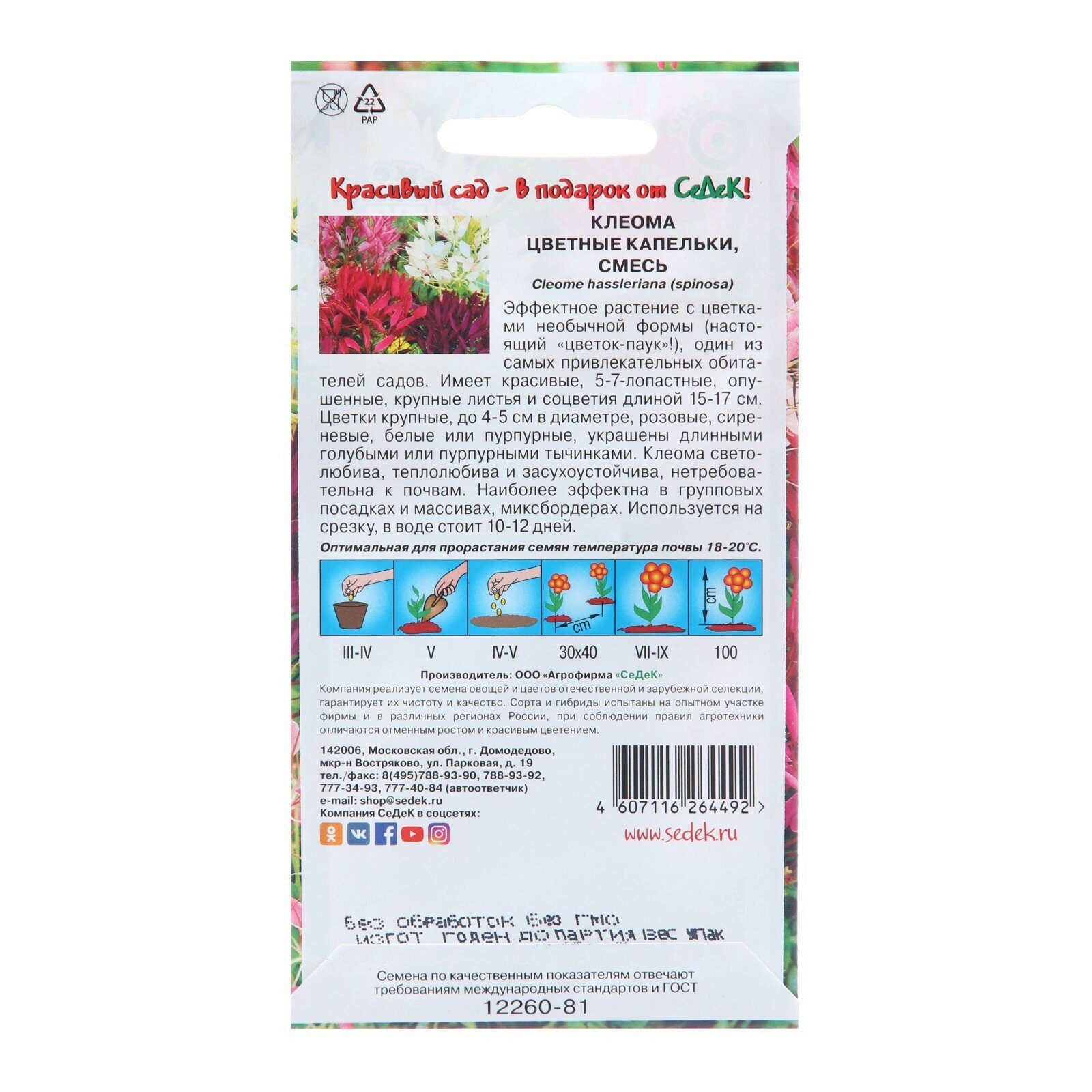 Сервис сравнения цен СкидкаГИД предлагает сравнить цены на товар «Семена цветов СеДеК Клеома СеДеК Цветные капельки 0,2 г»