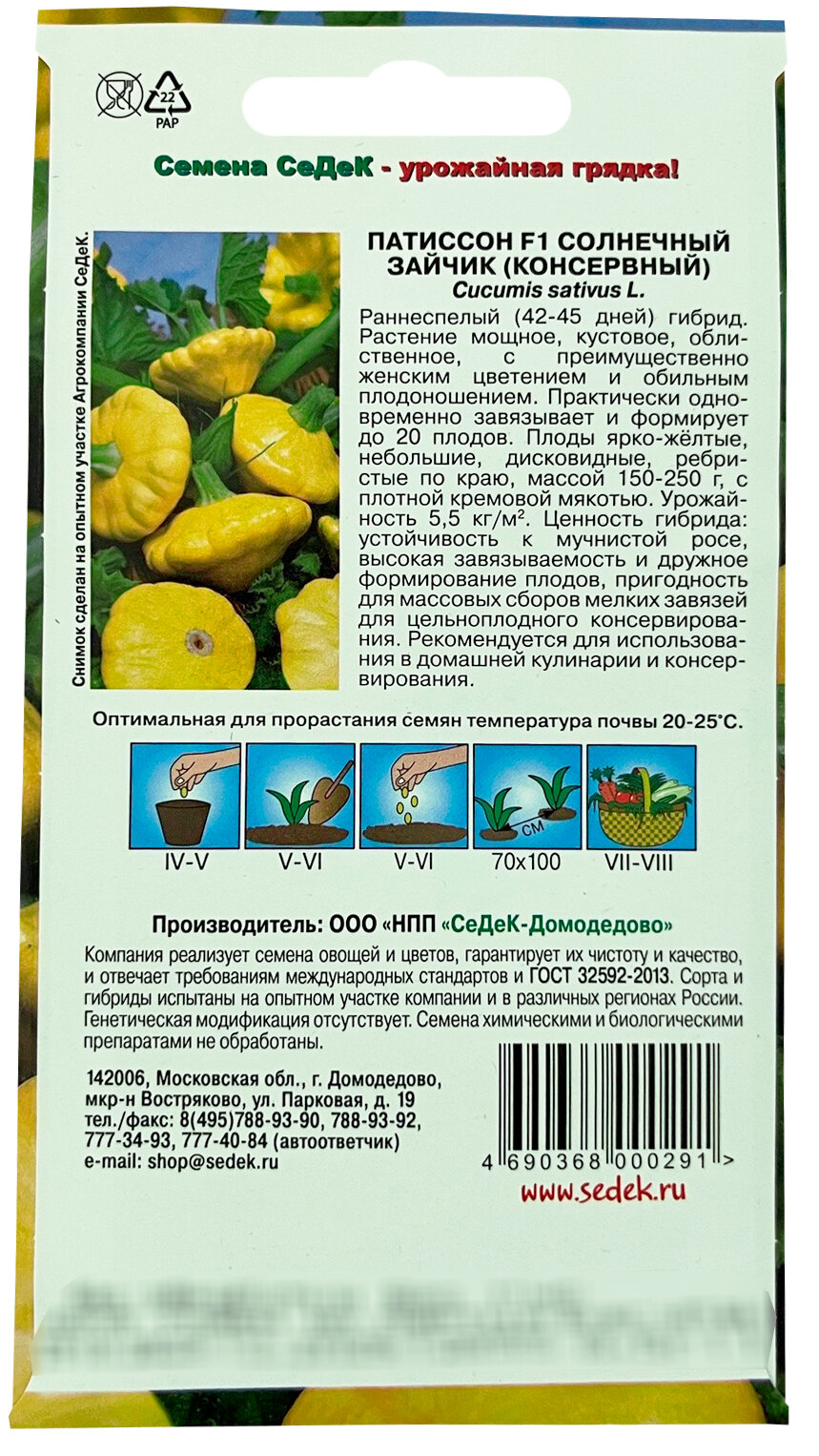 Сервис сравнения цен СкидкаГИД предлагает сравнить цены на товар «Семена овощей и ягод СеДеК Патиссон СеДеК консервный Солнечный Зайчик 0,5 г»