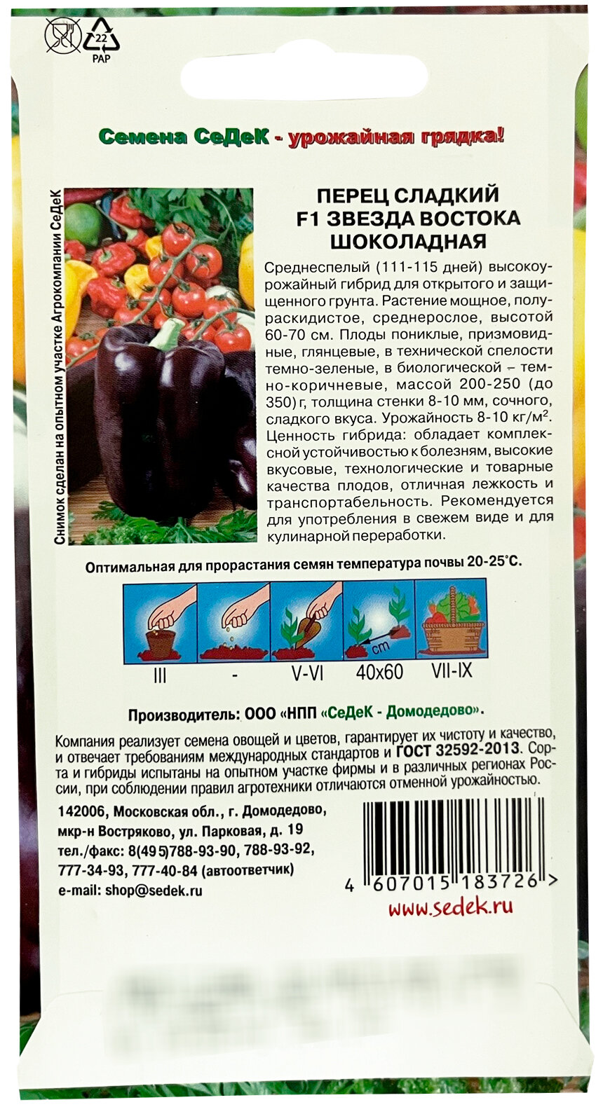 Сервис сравнения цен СкидкаГИД предлагает сравнить цены на товар «Семена овощей и ягод СеДеК Перец СеДеК Звезда Востока Шоколадная F1 0,1 г»