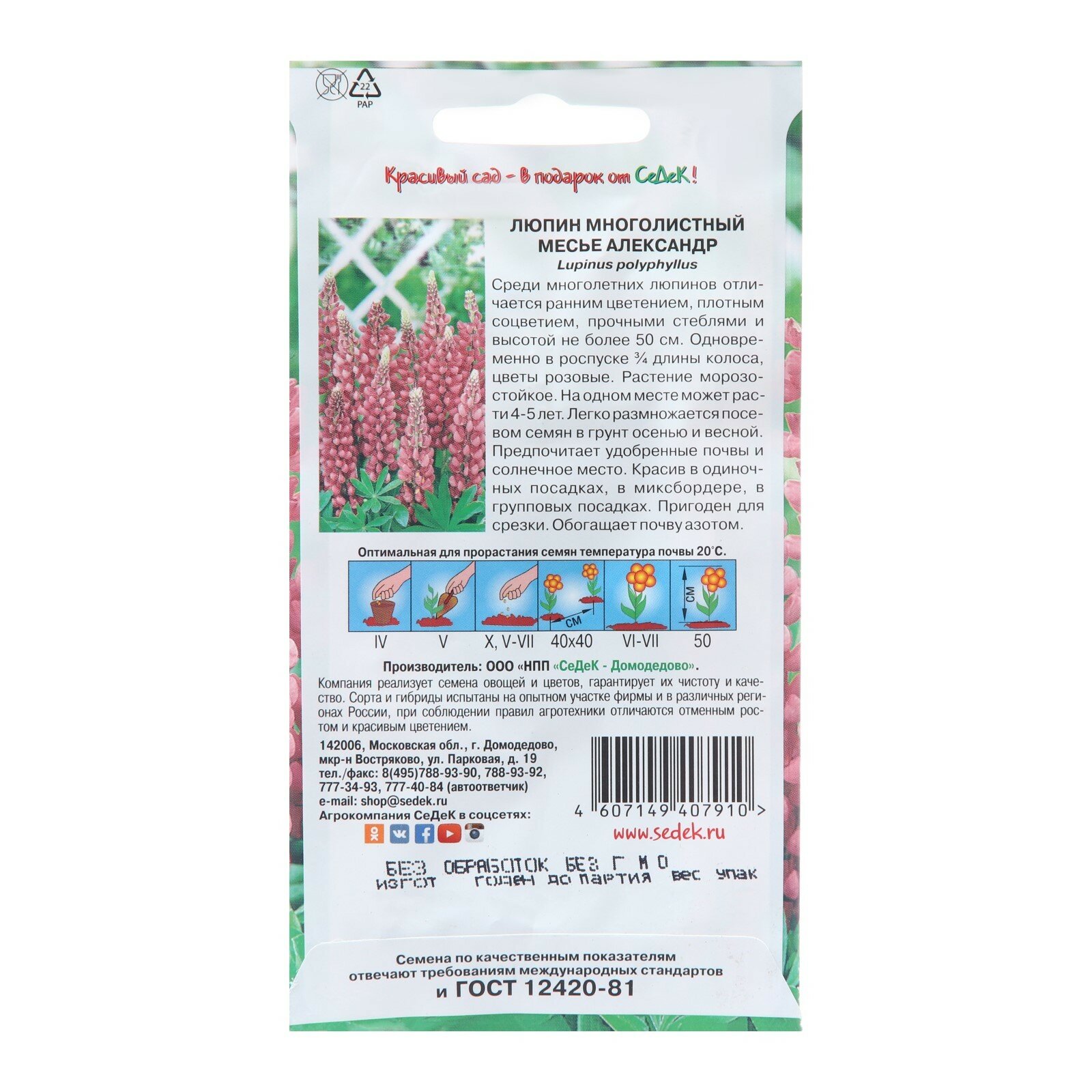 Сервис сравнения цен СкидкаГИД предлагает сравнить цены на товар «Семена цветов СеДеК Люпин СеДеК Месье Александр розовый 0,2 г»