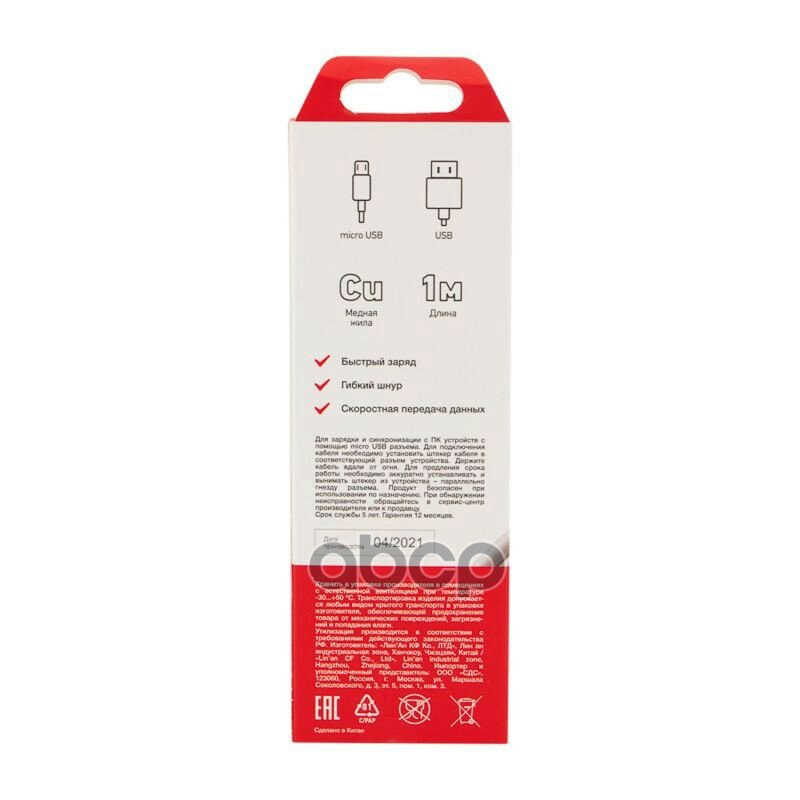Модель: Кабель micro-USB Rexant белый 1 м
