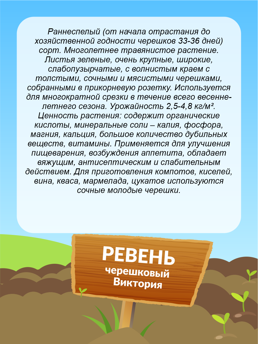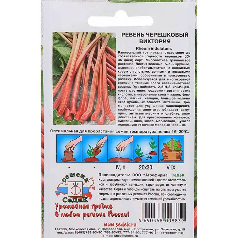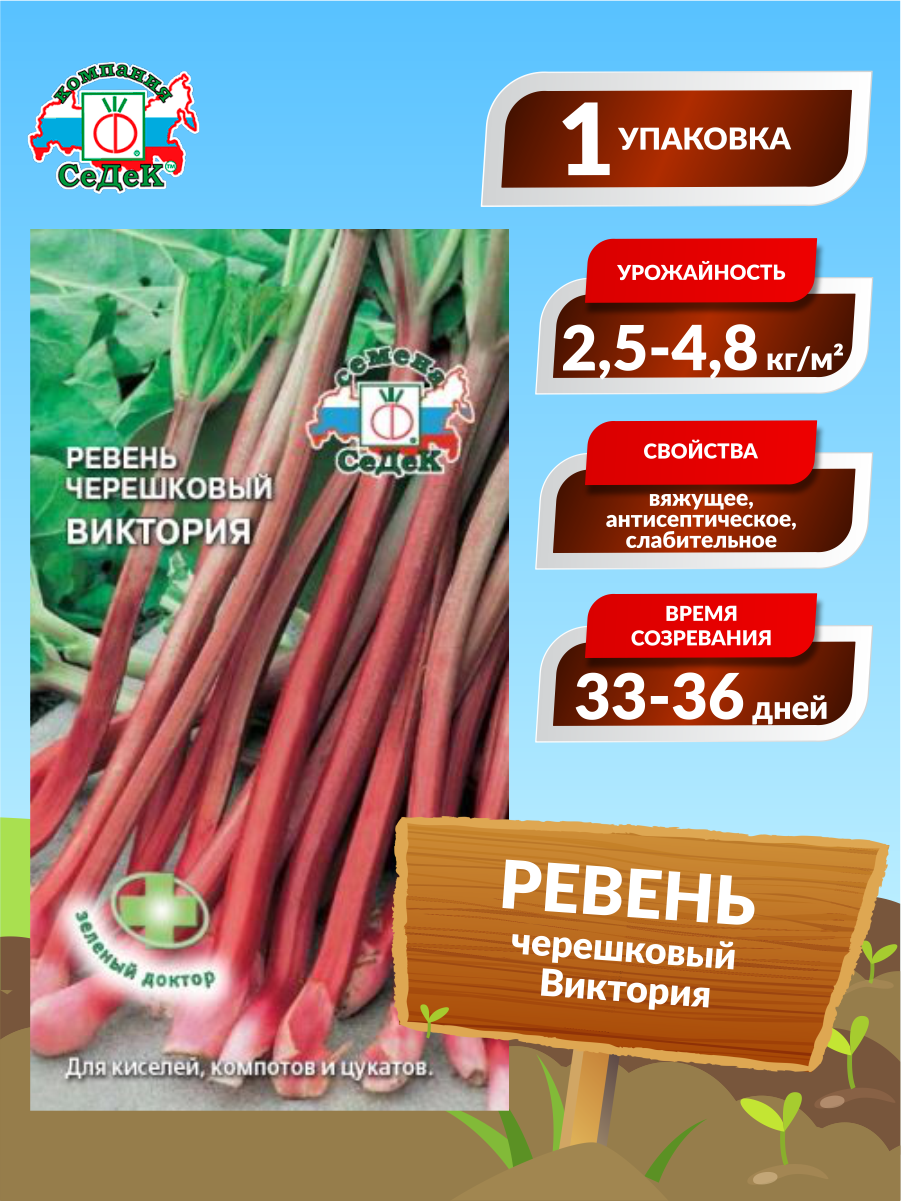 Сервис сравнения цен СкидкаГИД предлагает сравнить цены на товар «Семена пряных трав и салатов СеДеК Ревень СеДеК черешковый Виктория 0,1 г»