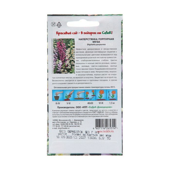 Сервис сравнения цен СкидкаГИД предлагает сравнить цены на товар «Семена цветов СеДеК Наперстянка СеДеК Муза пурпурная 0,2 г»