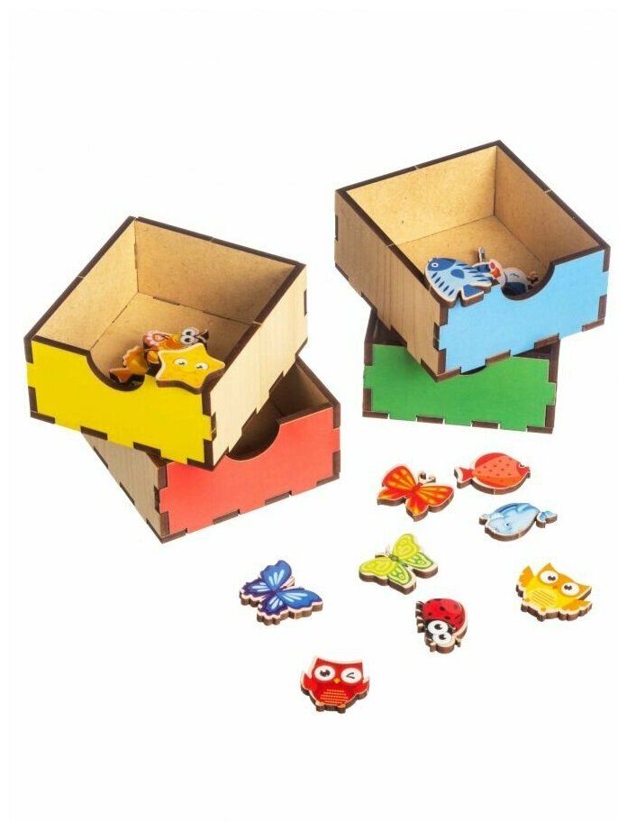 Волшебный комодик - удивительная развивающая игрушка! Комодик содержит 4 плашки и 48 фигурок разных цветов. В нашем комодике каждая фигурка уникальна и не повторяется с другими, что делает игру малыша более интересной и разнсторонней. Ребенок может сначала высыпать содержимое ящиков и разложить фигурки по группам. Затем он должен разложить каждую фигурку в свою ячейку, что потребует внимательности, логики и сообразительности. Также комодик можно использовать в повседневных играх с куклами или героями мультиков, хранить в ящиках важные для малыша мелочи. Игрушка развивает мелкую моторику, концентрацию внимания, усидчивость, зрительное восприятие и другие важные для жизни качества.