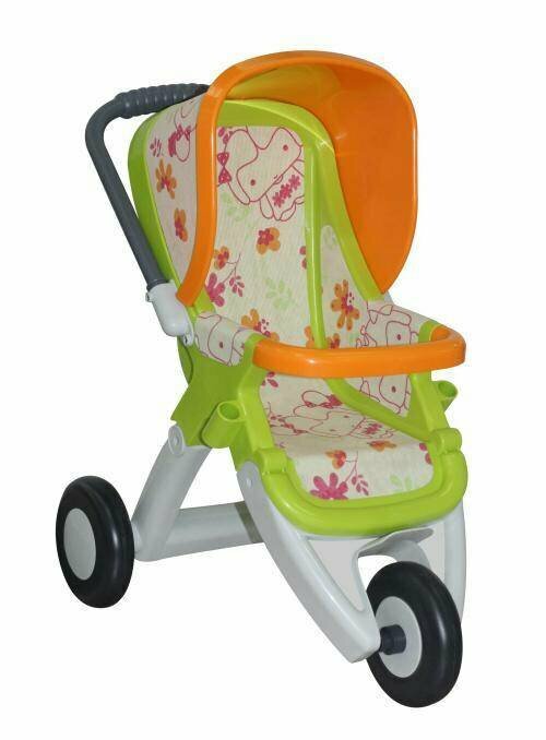 Коляску можно катать как дома, так и на прогулках по улице. В коляску уместится небольшая кукла или мягкая игрушка. У коляски имеется солнцезащитный козырек и ограничительный бампер.