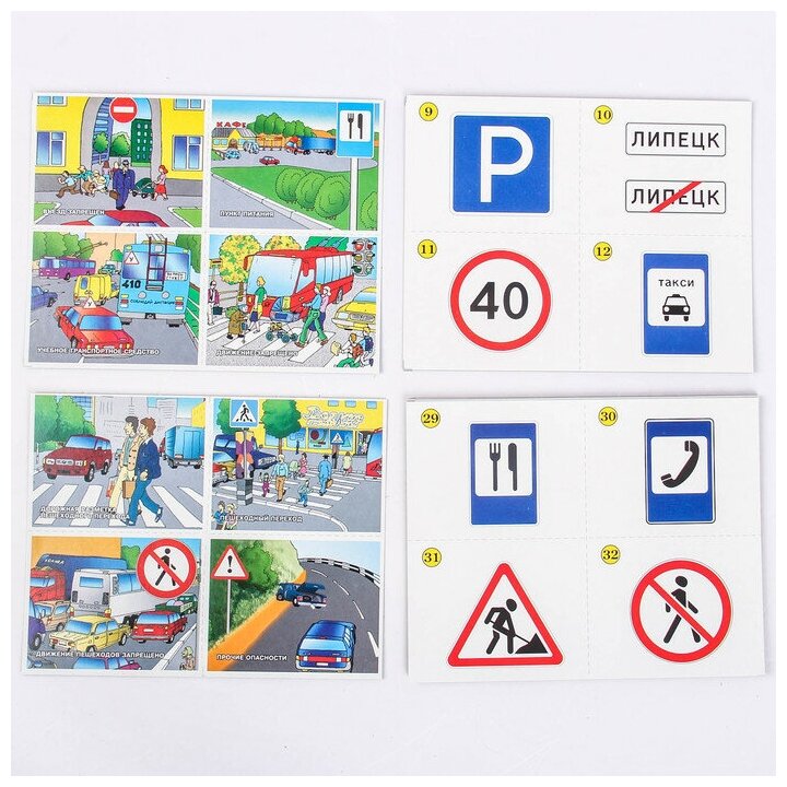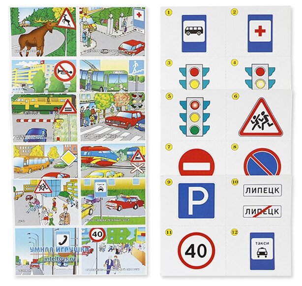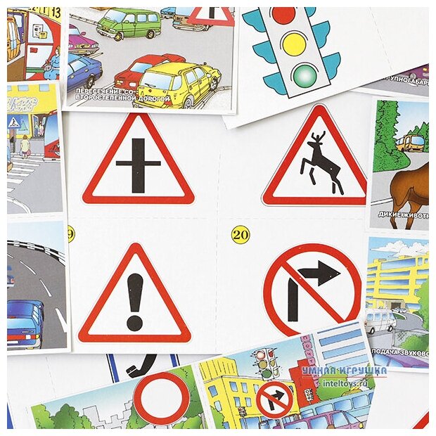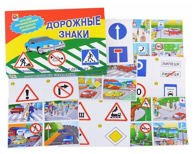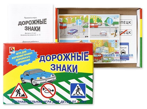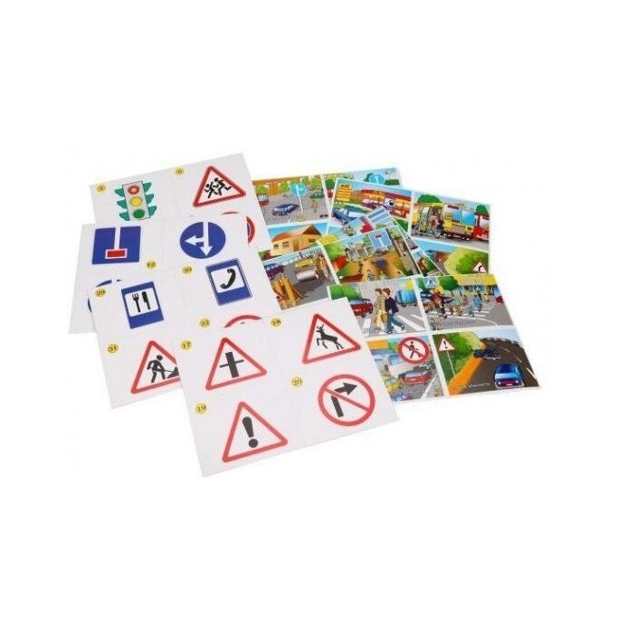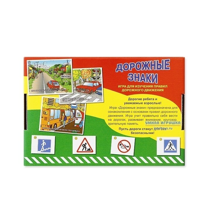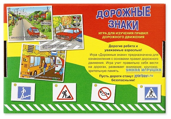 Эта игра-лото в увлекательной форме познакомит ребенка с основными правилами дорожного движения. В комплект игры входят карточки с изображением различных дорожных ситуаций, к которым нужно подобрать карточки с дорожными знаками. Игра развивает внимание, память, логическое мышление. Позволяет приобрести навыки правильного поведения на дороге.