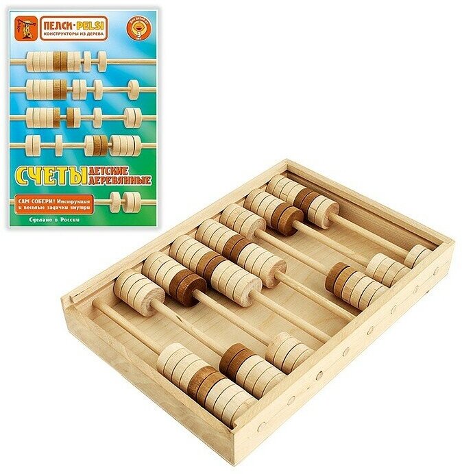 Счеты требуют самостоятельной сборки. Инструкция и подборка из веселых задачек внутри.С помощью счет ребенок в игровой форме может научиться считать.Игрушка изготовлена из натурального дерева, поможет в развитии мелкой моторики рук, логики, надолго увлечет вашего ребенка и подарит массу радостных моментов.