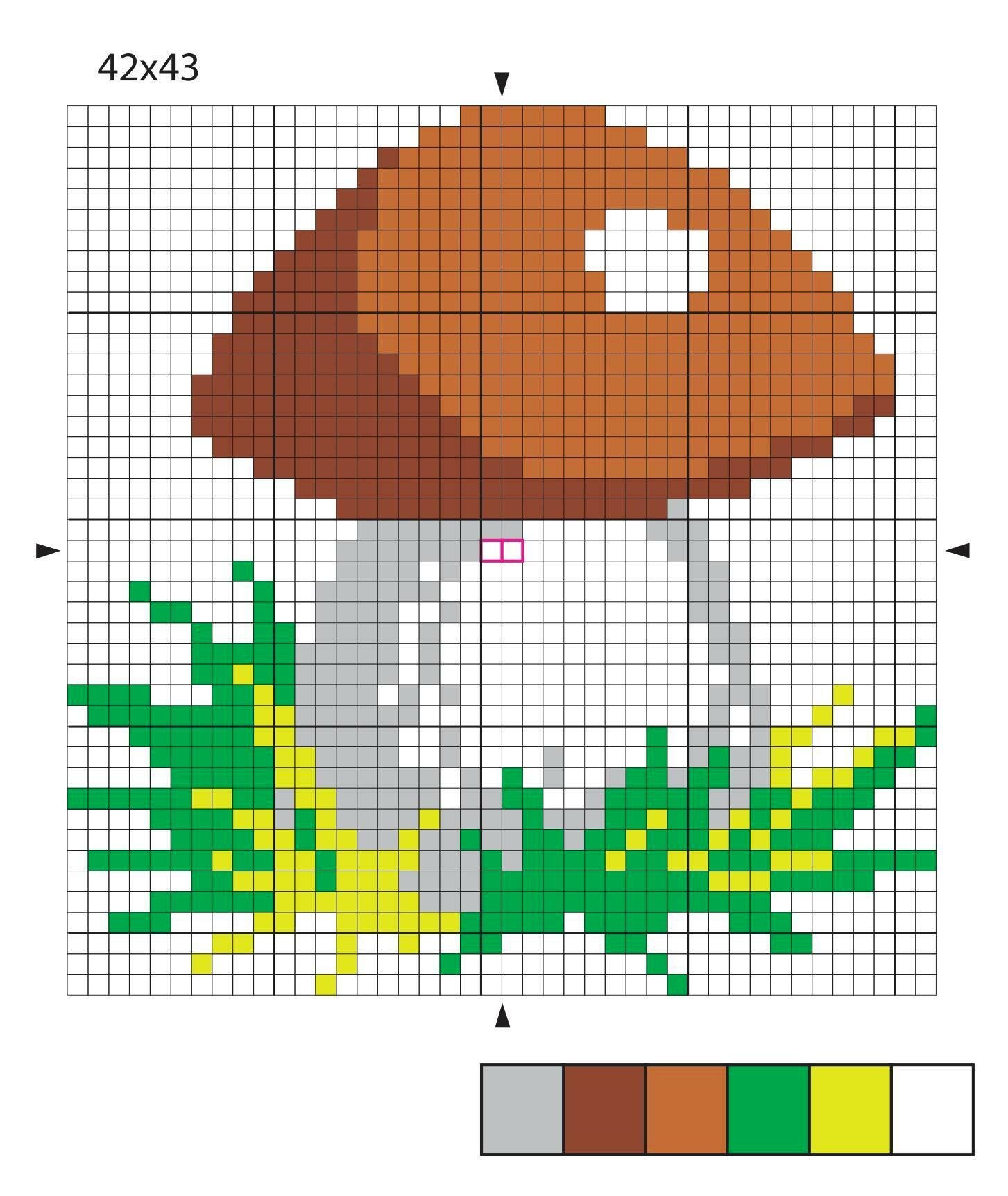 Схему можно использовать для вышивания биссером. Только фон сделать нежно голубым, а для грибка подобрать биссер цвета в соответствии со схемой.