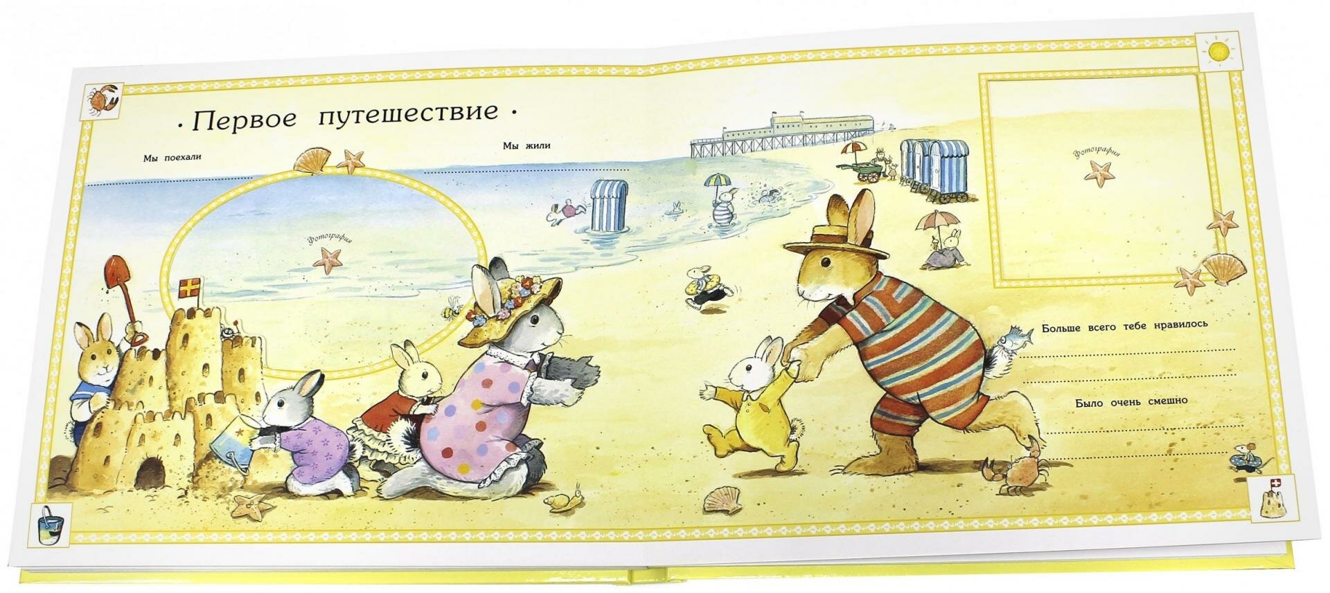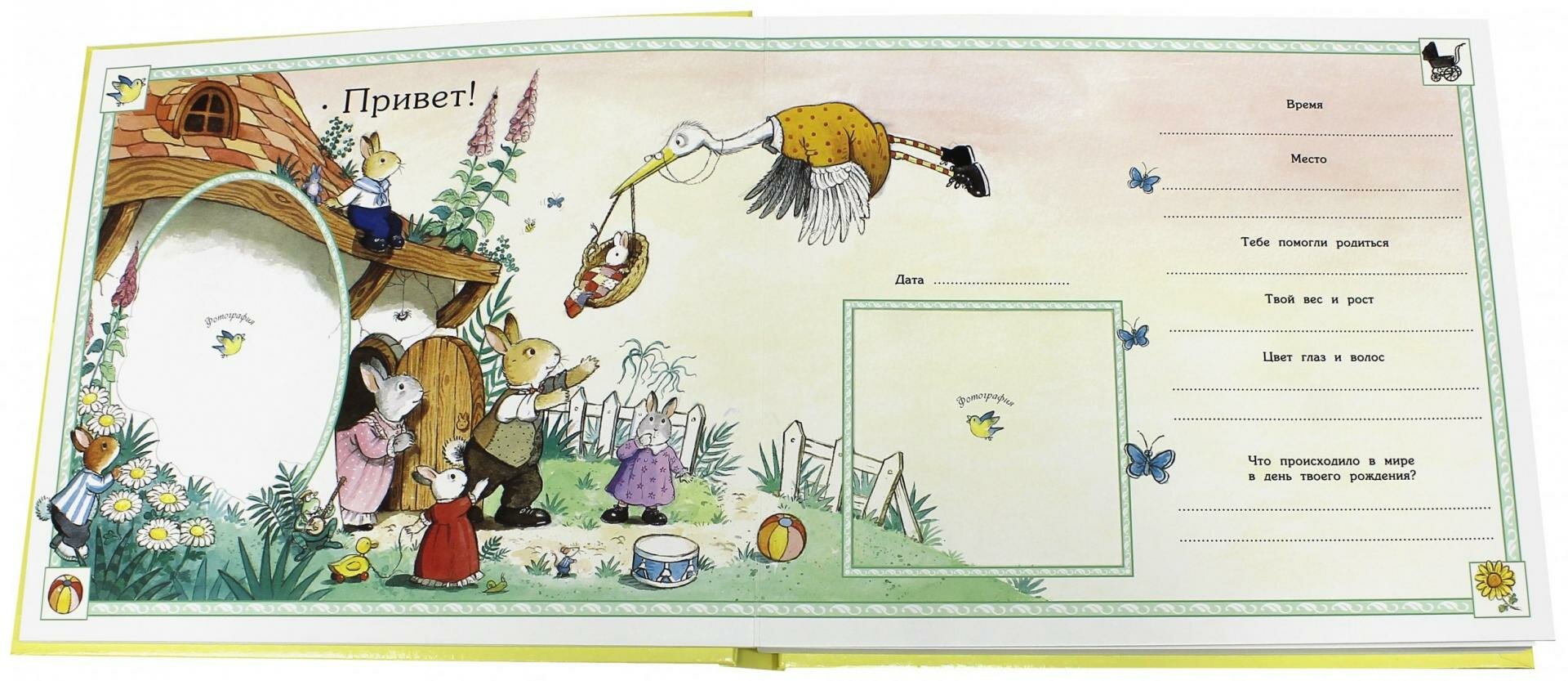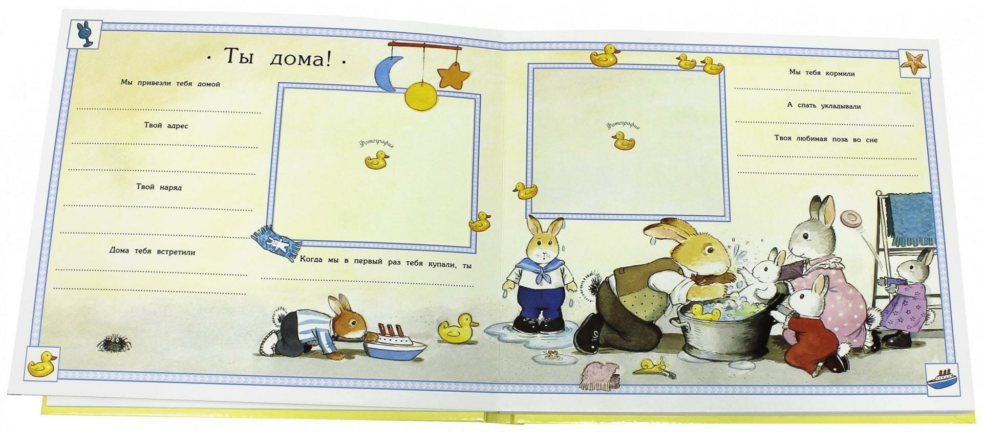 В альбоме можно вставлять в специальные рамки фотографии малыша и его семьи, записывать даты важных событий, отмечать рост, вес и многое другое! Причем фотографии не нужно вклеивать, а можно просто вставить в рамки.