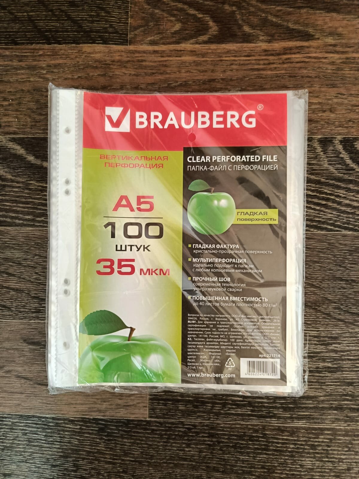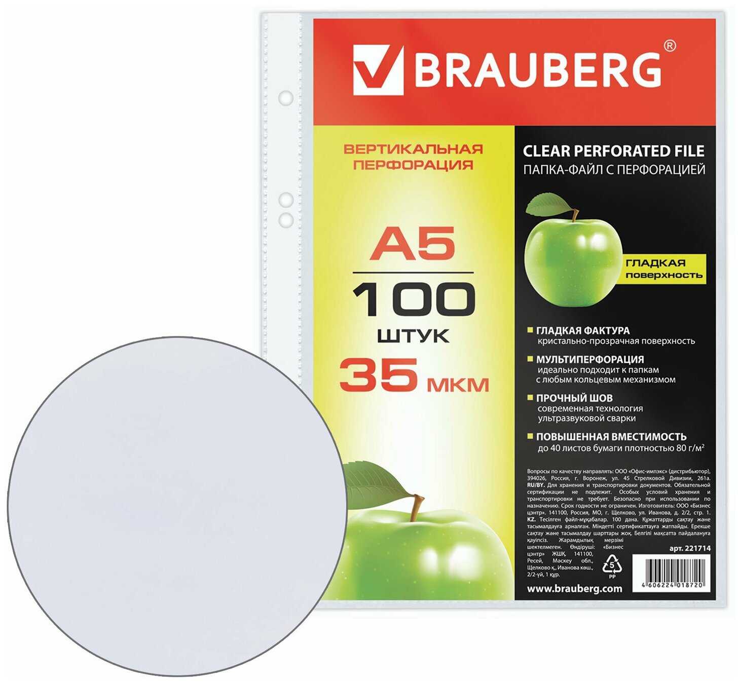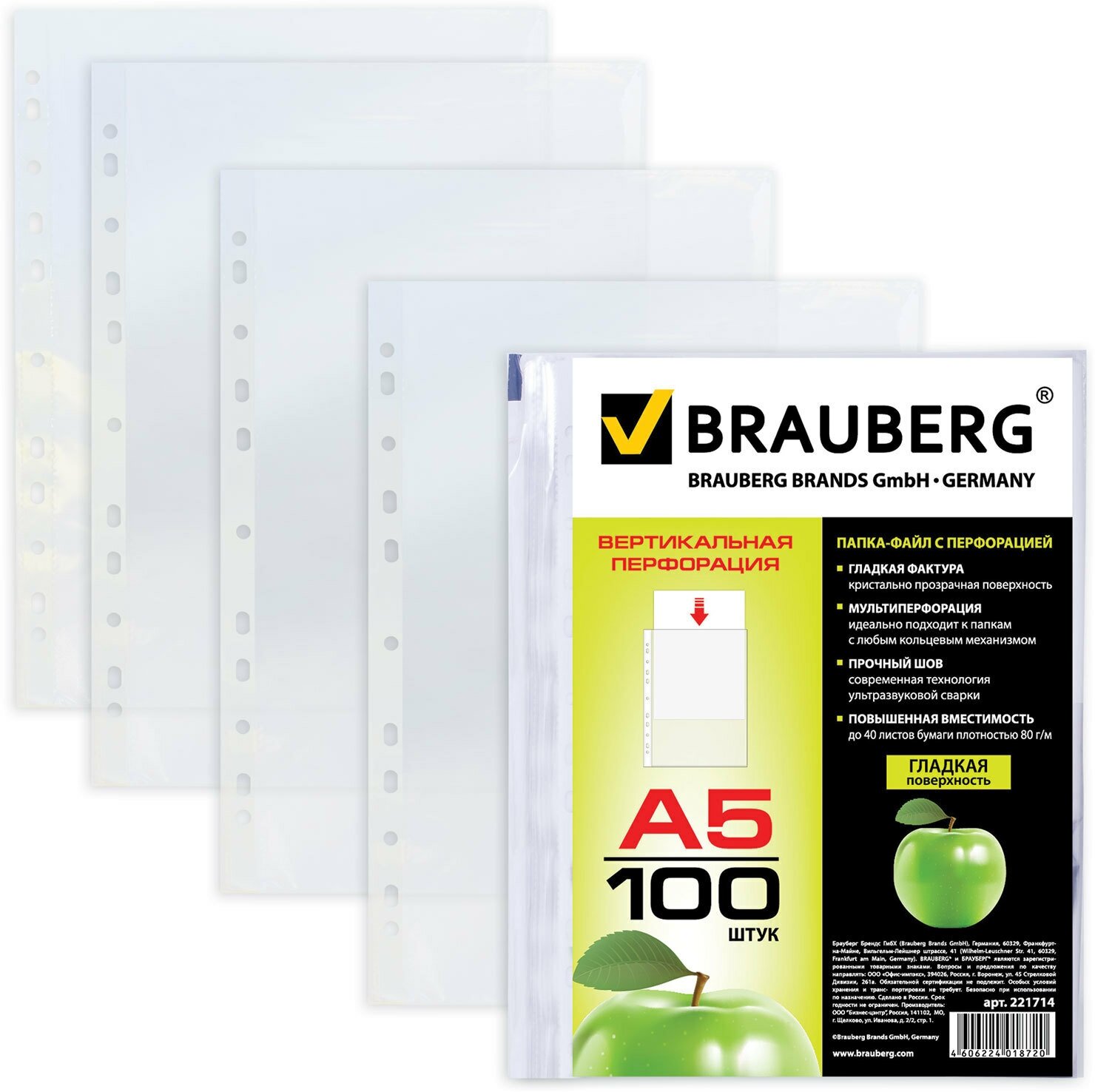 Папка-вкладыш с перфорацией А5 100 штук (221714); Brauberg, 2011