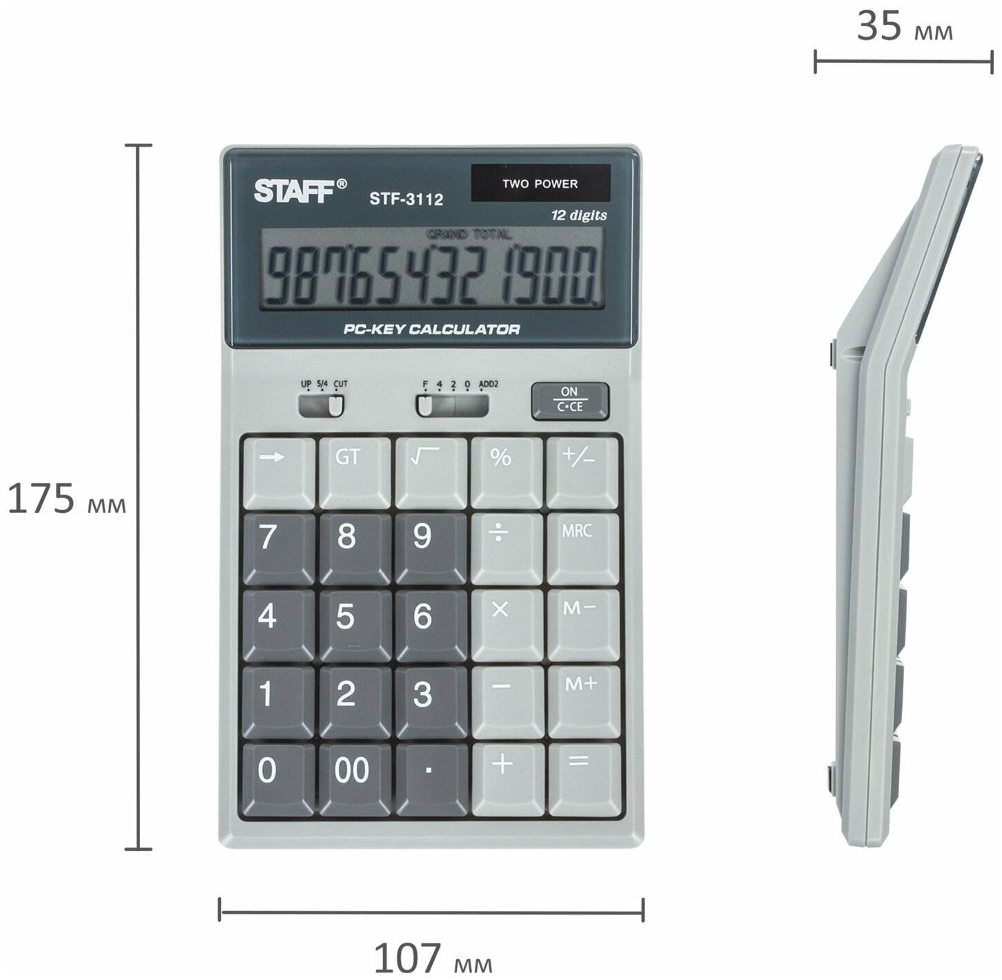 Электронный калькулятор, выполняющий основные математические функции. Большой дисплей, и компьютерные клавиши создают дополнительное удобство в работе.