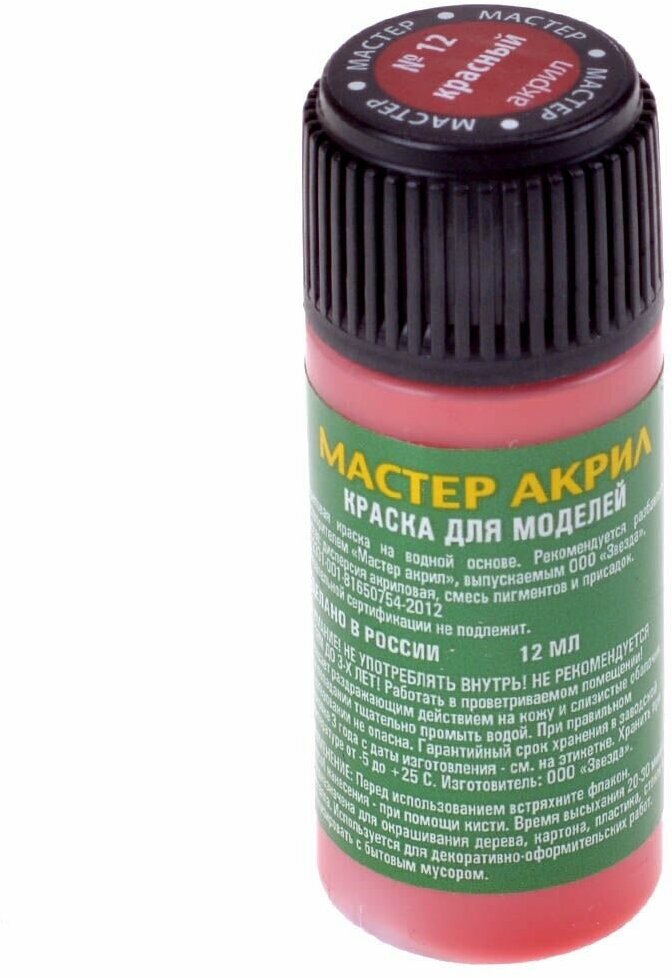 Краса от фирмы "Звезда" "Мастер Акрил" предназначена для окрашивания разных материалов и поверхностей (дерево, пластик, стекло, металл, картон). Очень удобна наносится с помощью кисти, быстро высыхает (не более 20 минут) и в случае случайного попадания на кожу легко смывается. Для получения естественного, насыщенного цвета необходимо нанести не менее 3 слоёв, одного флакона хватает на длительное время.