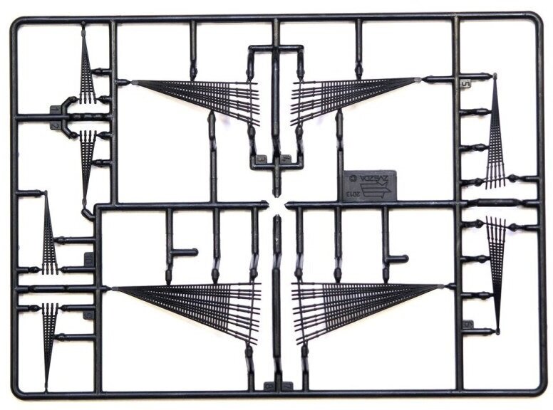 В данной модели пушки соединены в полосы, что нетипично для моделей серии "Сборка без клея". Подобная компоновка оказалась достаточно удобной и упростила сборку. Таким образом были удалены самые мелкие детали. И модель можно собирать даже с небольшим ребенком.