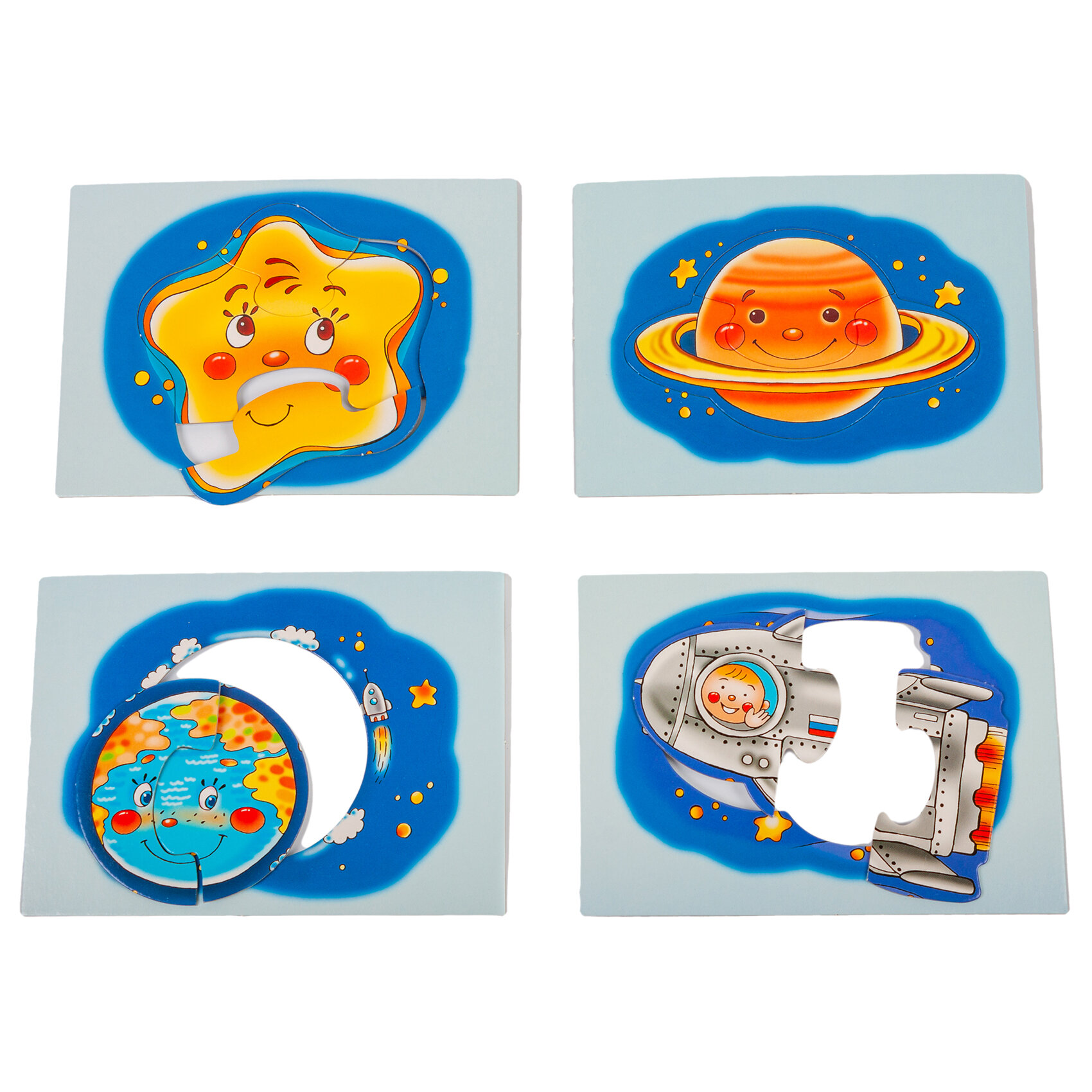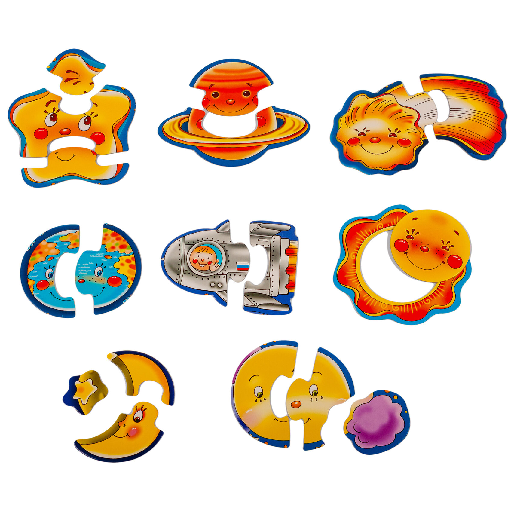 В комплект игры входит 8 рамок с изображением звёзд и планет, разделённых на части. Игра формирует навыки соединения деталей, развивает мелкую моторику рук и наглядно-образное мышление.