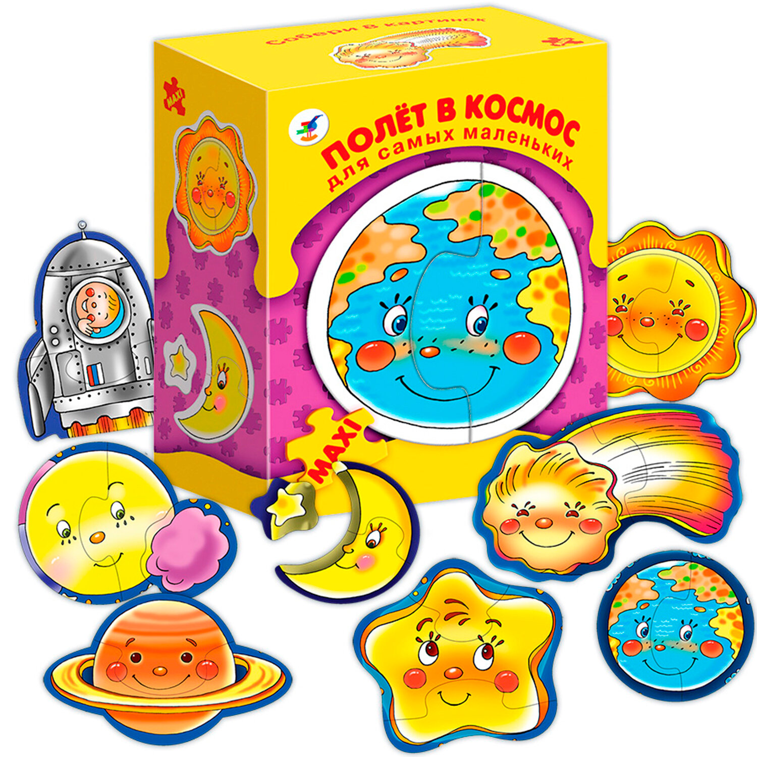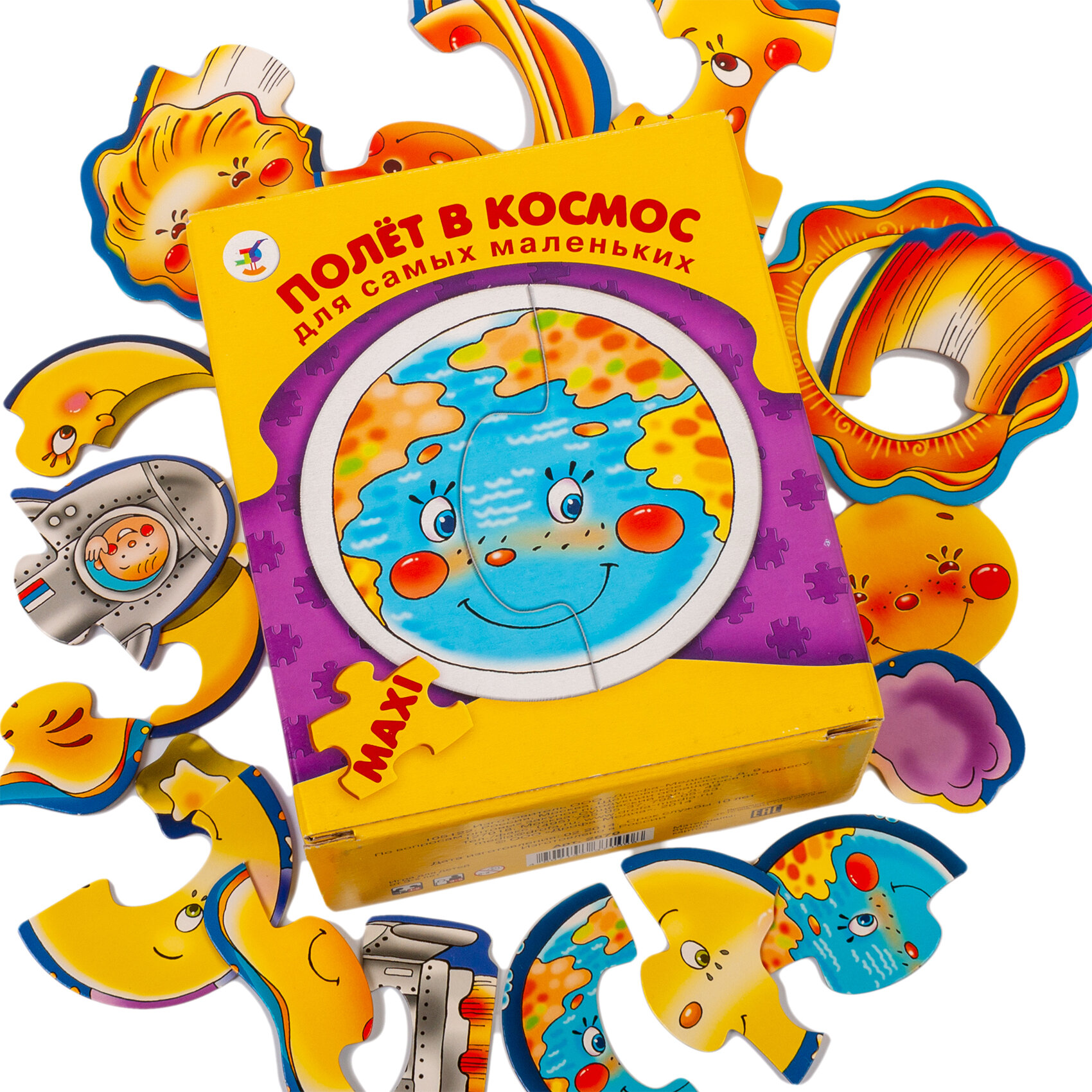 Из всей серии данных пазлов, мне приглянулся именно "Полет в космос". Племянник 2 года оценил на 5+. Пазлы из плотного картона, с яркими картинками.