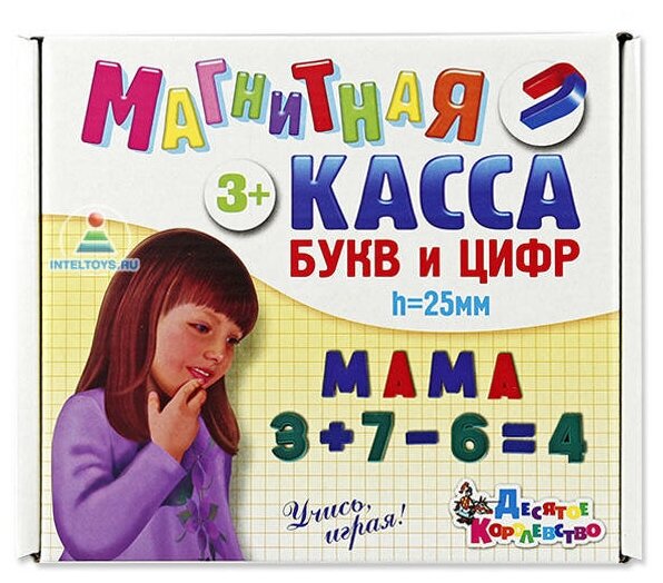 В магнитную кассу входят буквы высотой 2,5 см. Обратите внимание: НАБОР ПРЕДНАЗНАЧЕН ДЛЯ УВЕЛИЧЕНИЯ И ВОСПОЛНЕНИЯ БУКВ. Поэтому, возможно, наборы по содержанию разные. Мой набор следующий: