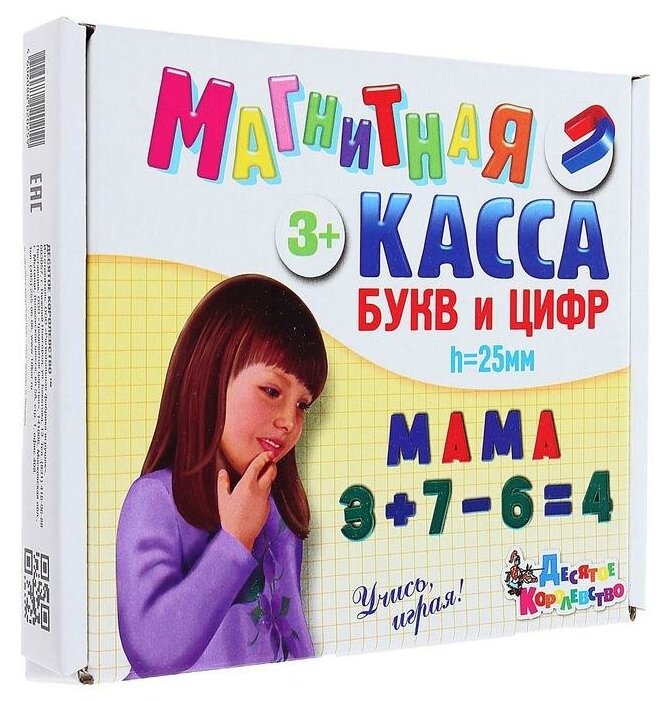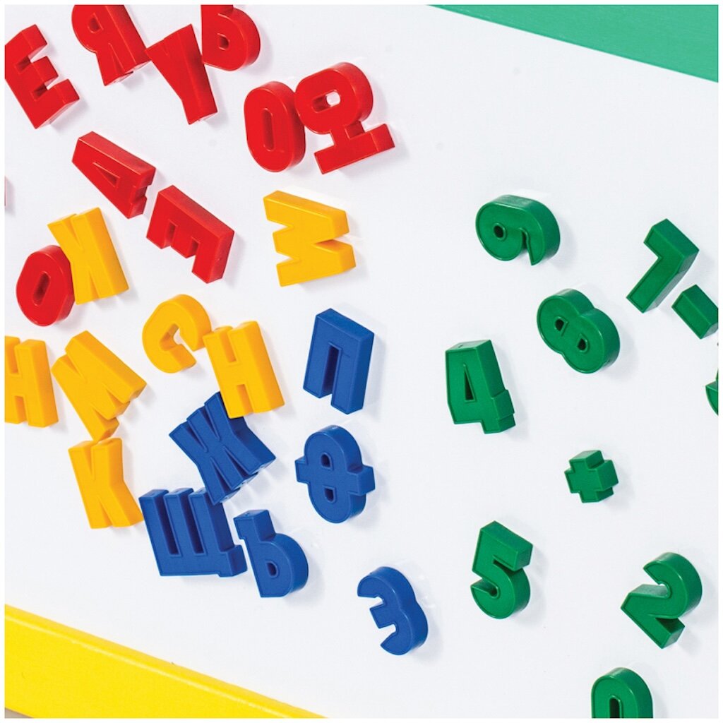 В данный набор входят буквы, цифры и знаки высотой 25 мм и комплект магнитов-вкладышей к ним. Пластмассовые детали изготовлены из экологически чистого материала.