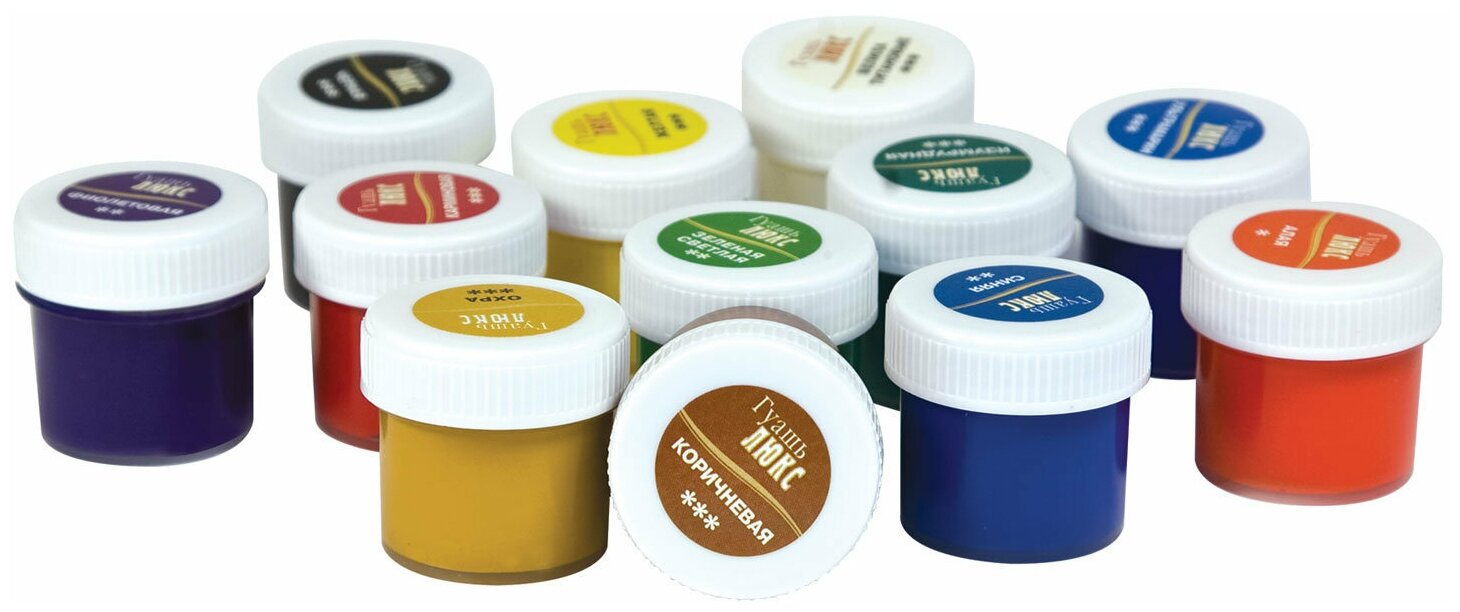 Гуашь художественная "Люкс" 12 цветов по 20 мл (14С 1038-08); Луч, 2022